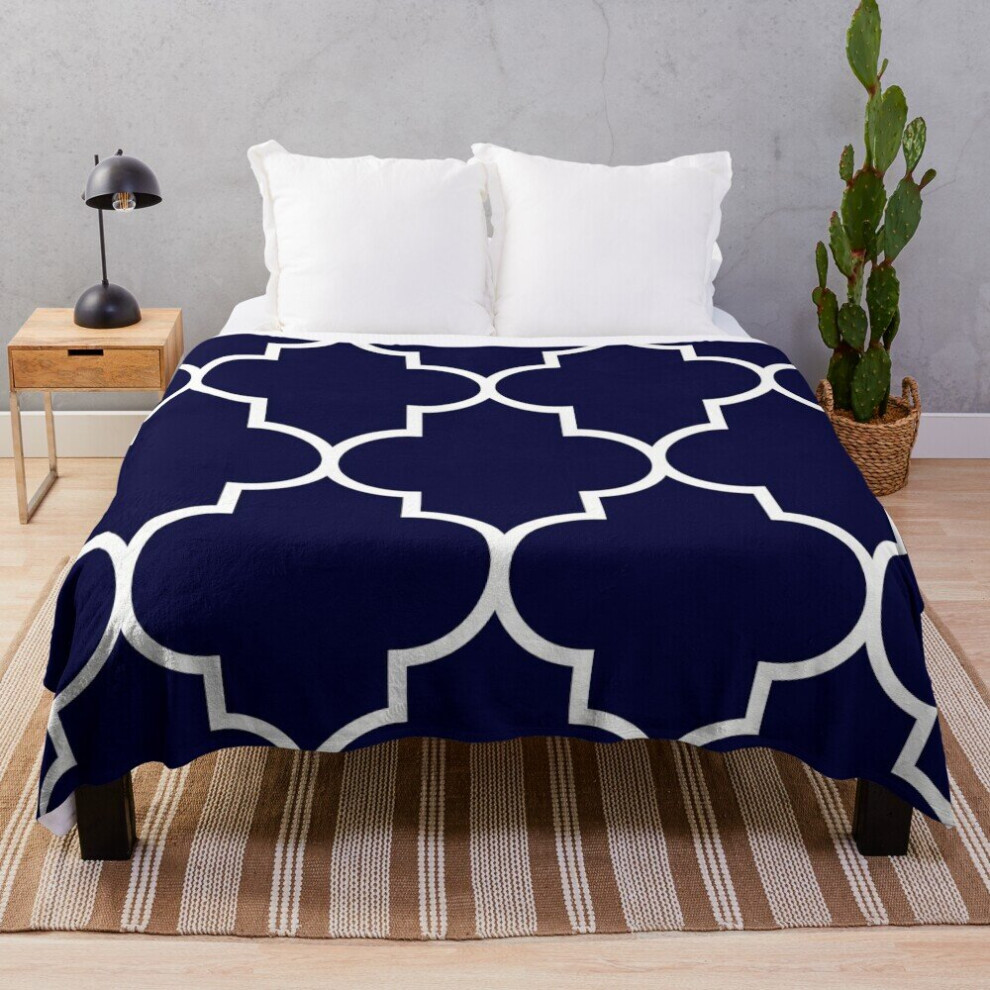 Fleece Throw Blanket Quatrefoil Large Navy Blue for Sofa Couch Kids 60 x 50 Inches
