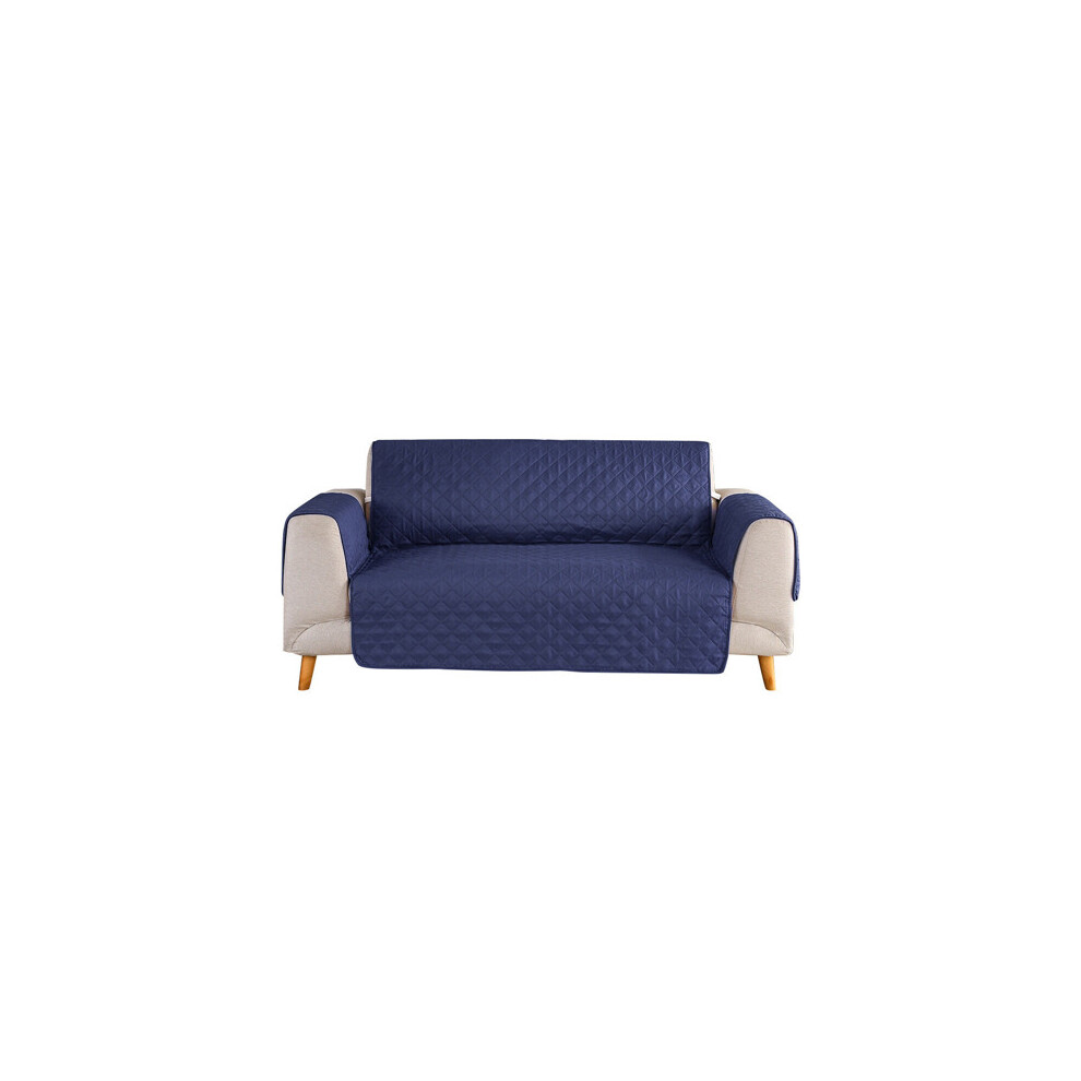 (Navy Blue, Sofa - 3 Seater) Youngshion Reversible Quilted Sofa Cover Slipcover