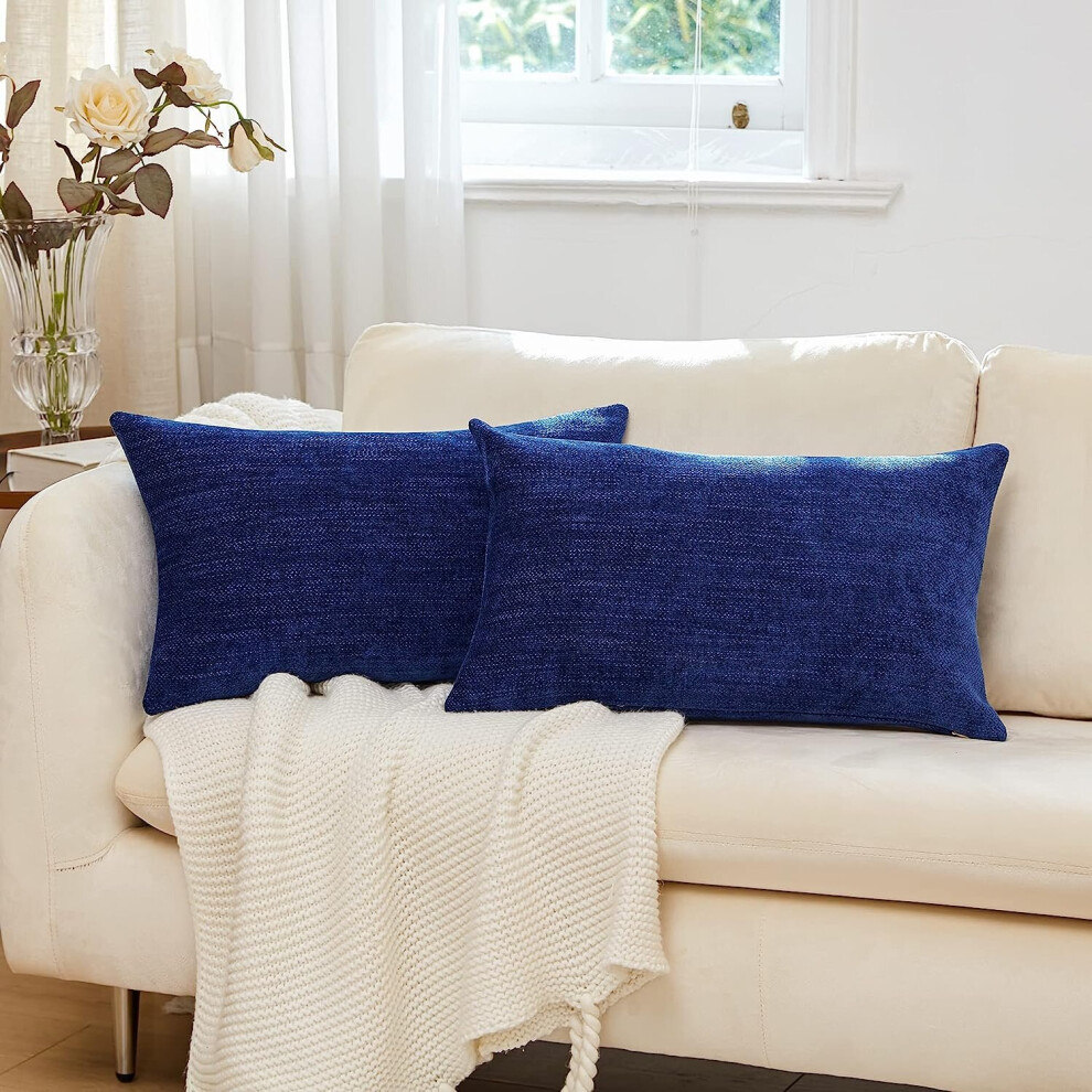 Waist pillowcases 12x20 inches, set of 2 navy blue pillowcases, sofa living room decoration, rectangular characteristic cushion covers