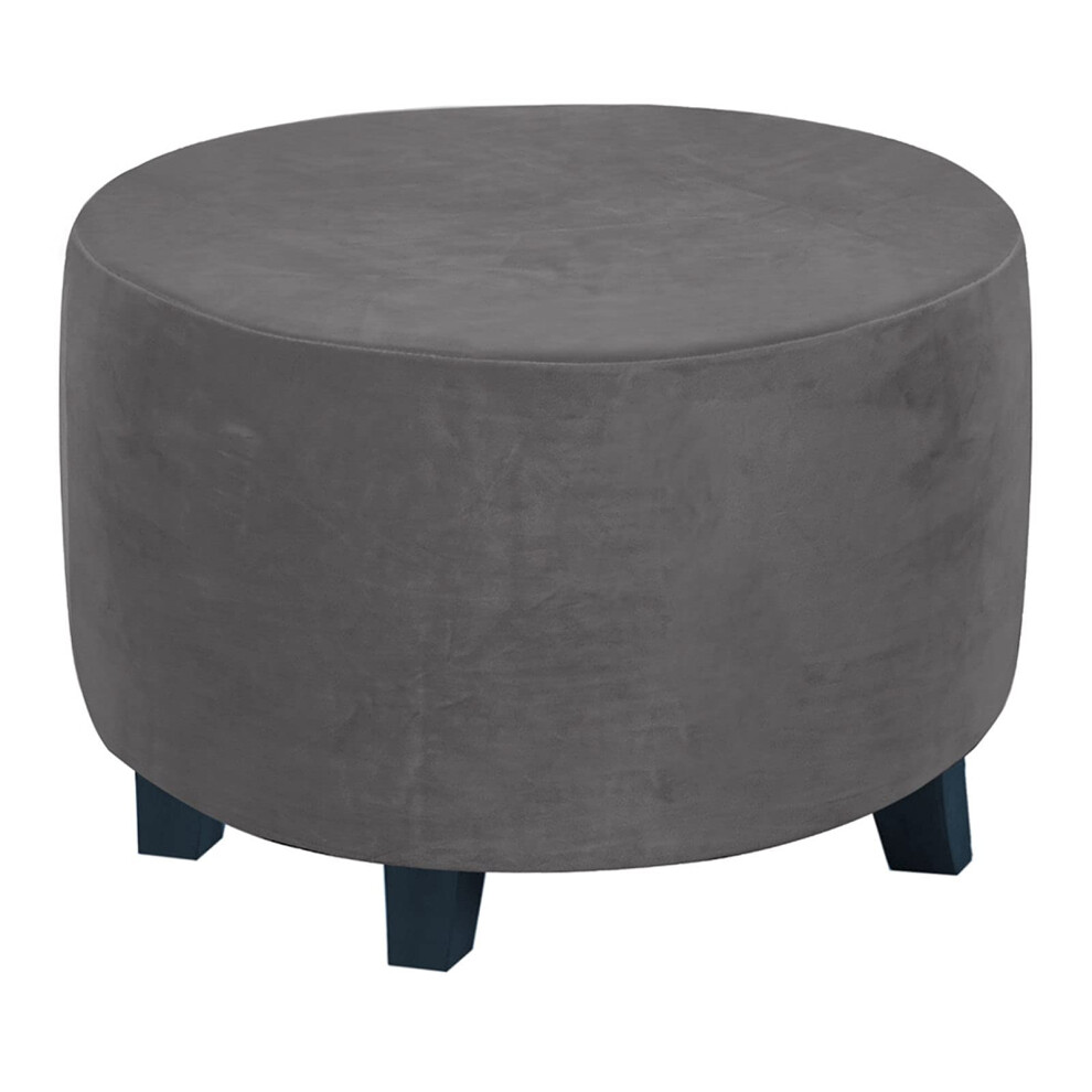 Footstool Cover, Extra Large Stretch Velvet Ottoman Cover, Round All-Inclusive Design, Navy Blue, Sofa Footstool Protector