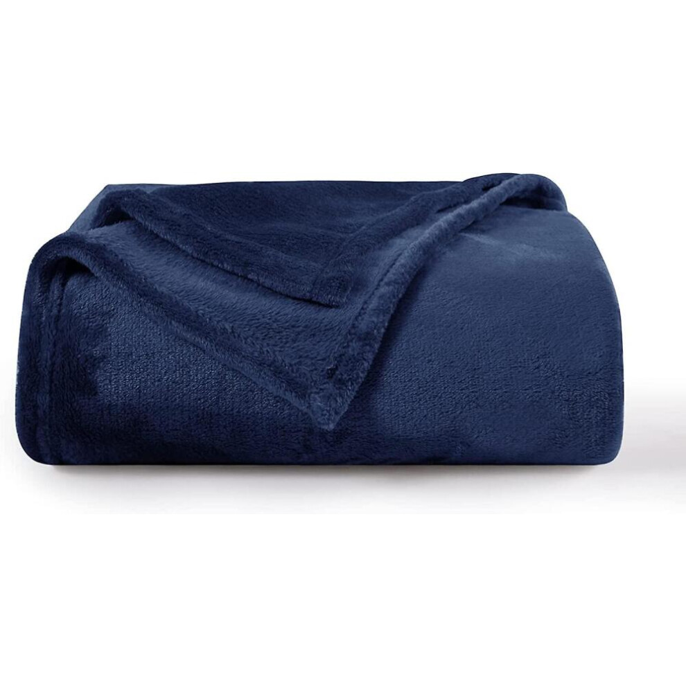 Brentfords Flannel Fleece Throw Blanket for Bed, Super Soft Cosy Warm Navy Blue Throw for Sofa Large Blanket Lightweight Fluffy Single Bed Throws, 120 x 150cm