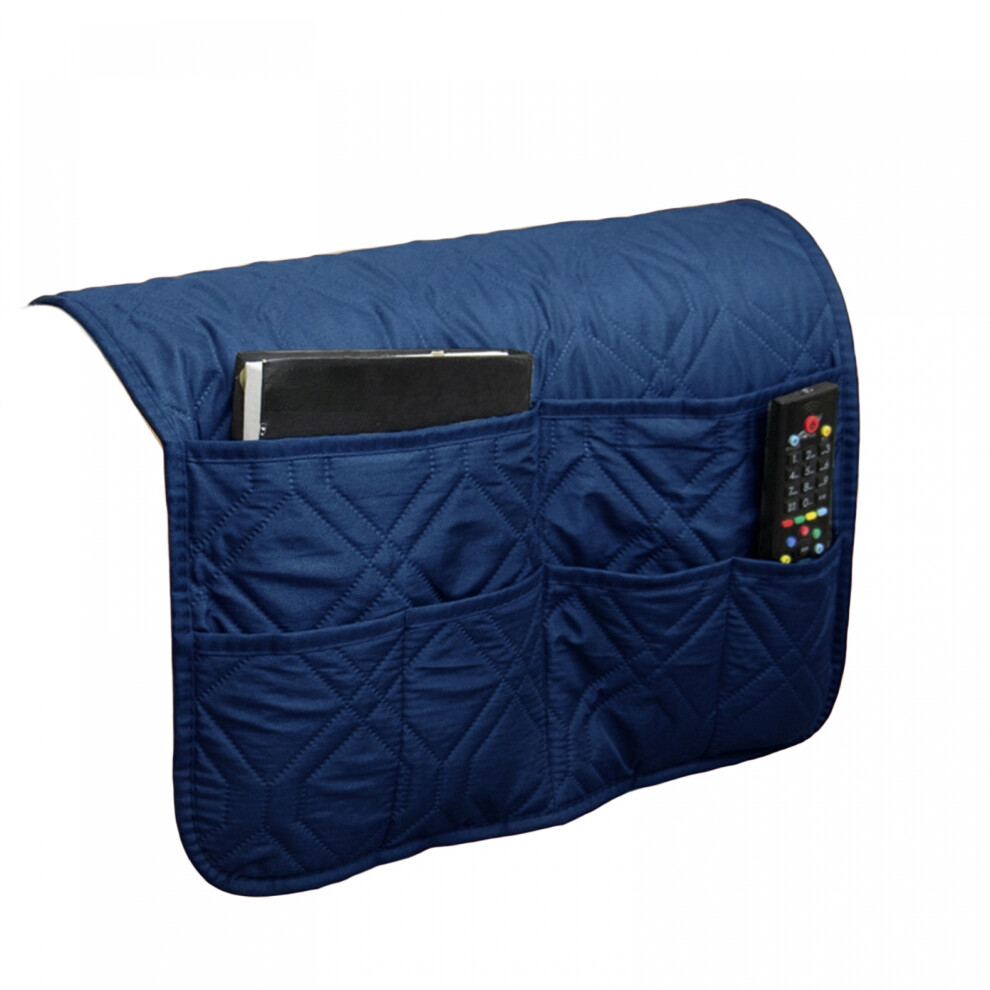 (One Size, Navy Blue) Sofa Armrest Organizer Non-Slip Arm Chair Couch Caddy Storage Organizer for Remote Control Cell Phone Magazine