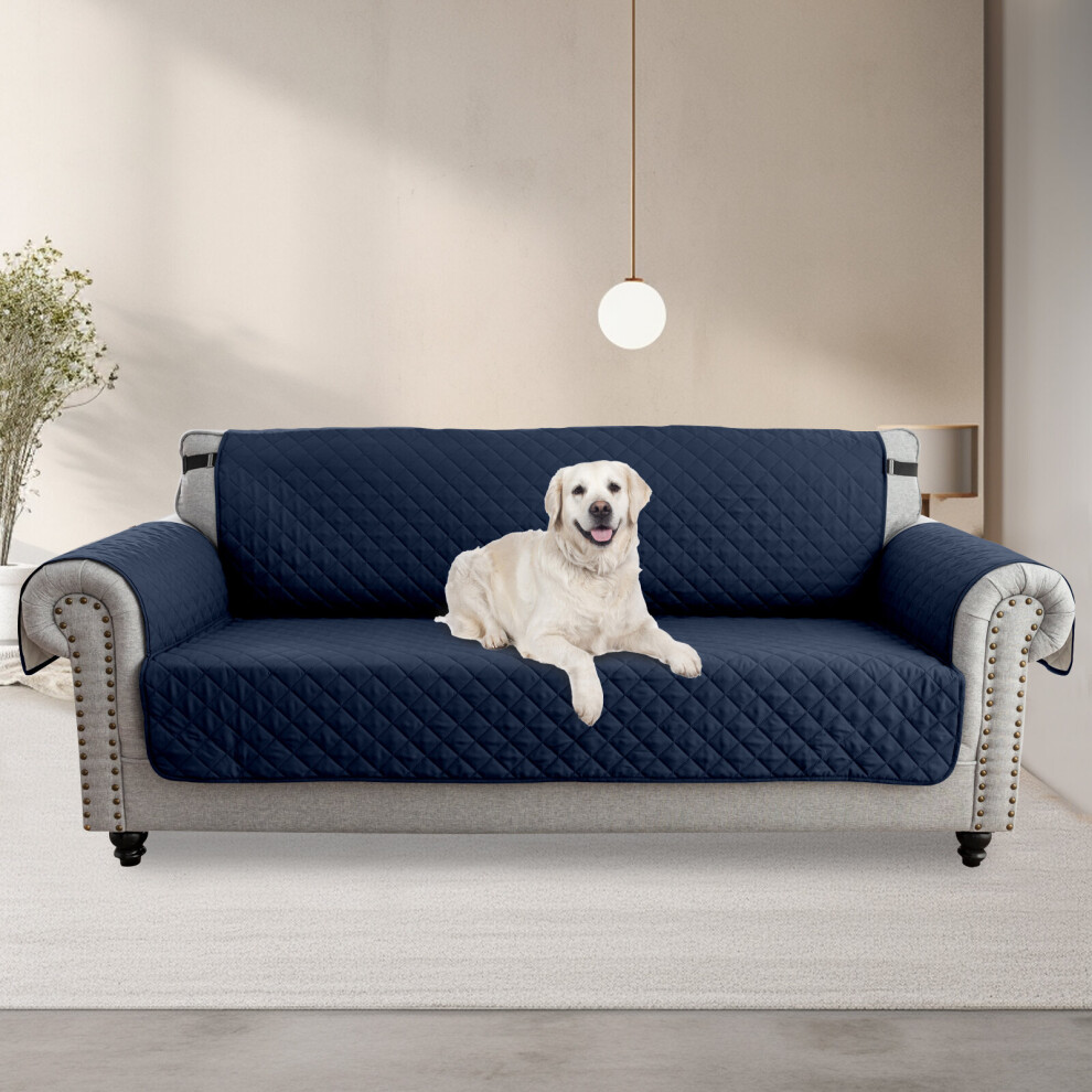 (3 Seater fit seat to 75", Navy blue) Quilted Sofa Cover Waterproof Nonslip Furniture Covers