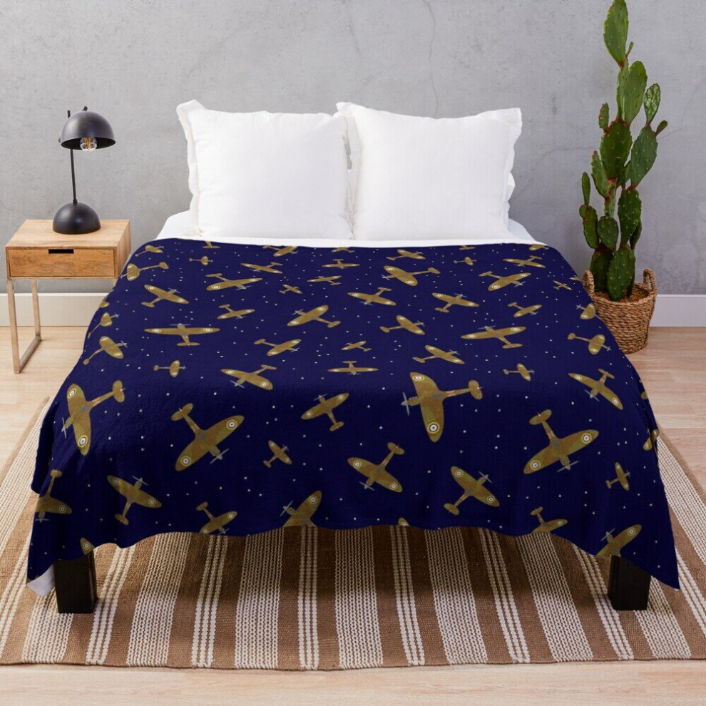 Fleece Throw Blanket Spitfire War Planes in Flight on Navy Blue for Sofa Couch Kids 60 x 50 Inches