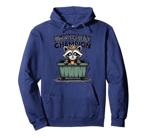 Trash Panda Dumpster Diving Champion Funny Raccoon Pullover Hoodie, Adult Unisex, Navy, S