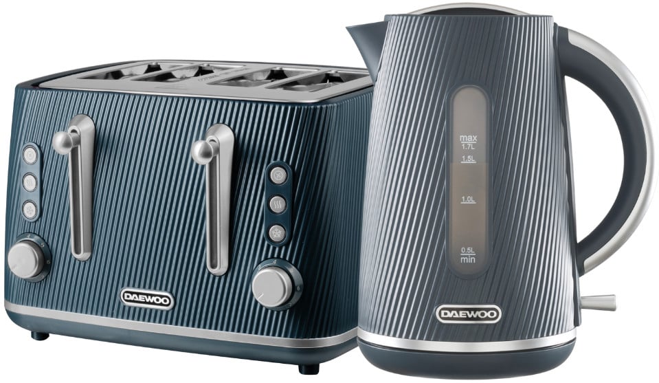Daewoo Cascade 1.7L Jug Kettle and 4 Slice Toaster Navy Ribbed Texture Design