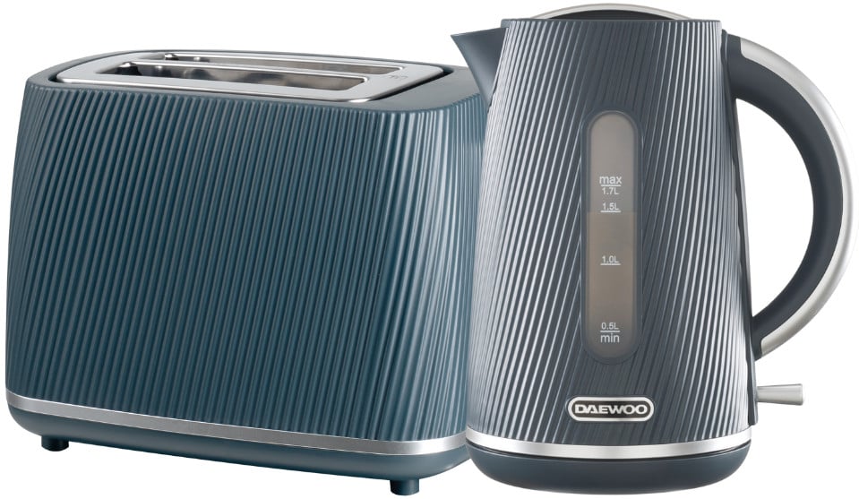 Daewoo Cascade 1.7L Jug Kettle and 2 Slice Toaster Navy Ribbed Texture Design