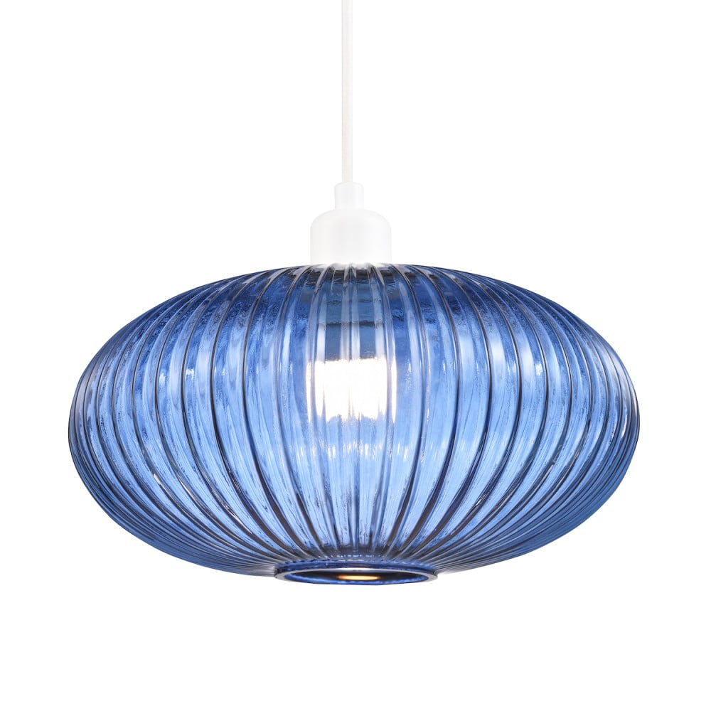 Modern Designer Navy Midnight Blue Line Ribbed Glass Oval Pendant Lamp Shade ...