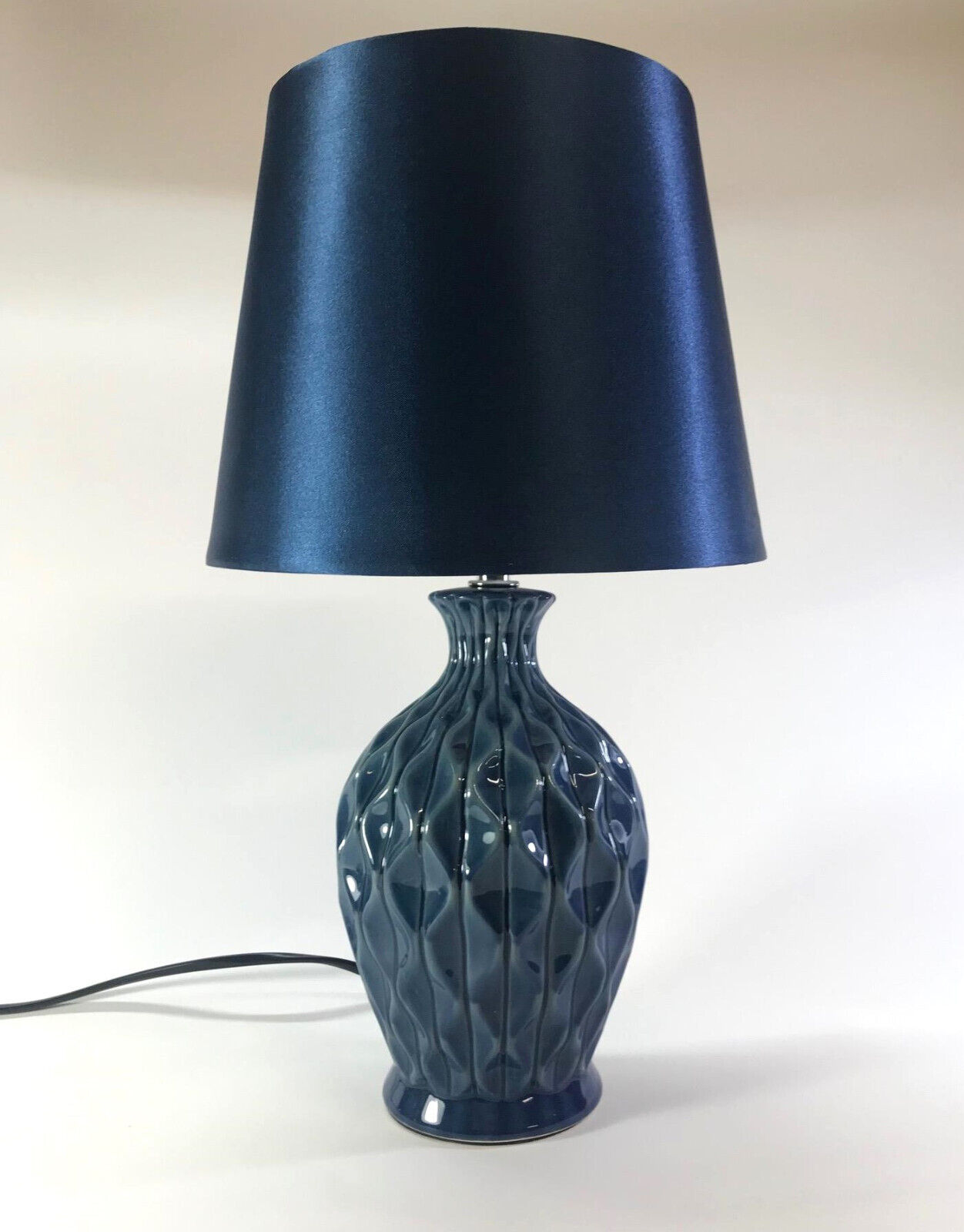 Elegantly Crafted Ceramic Table Lamp Navy Blue Bedside Light Faux Silk Lampshade