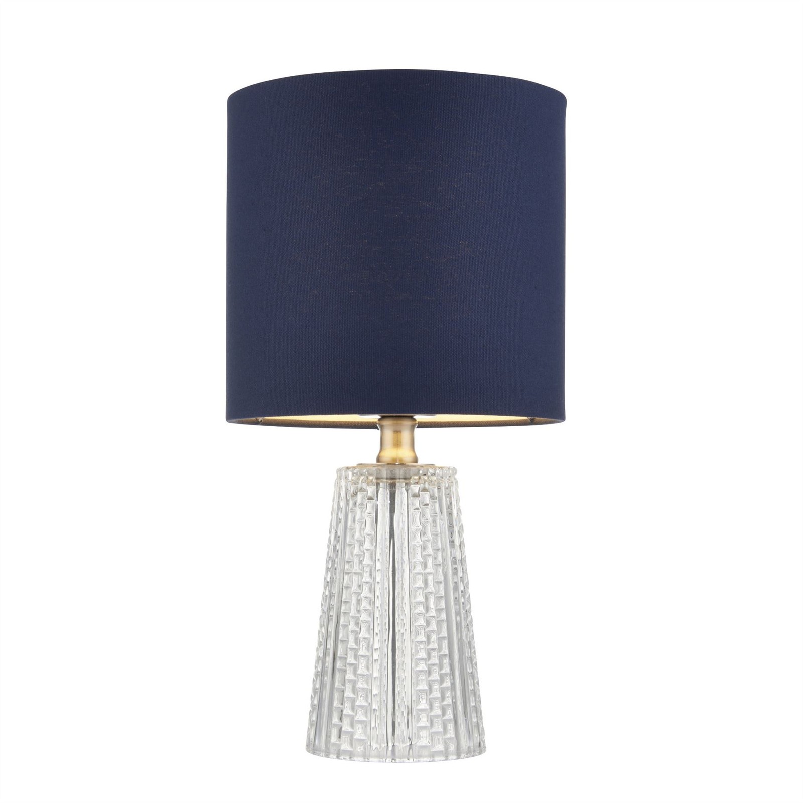 Table Lamp Clear Ribbed Glass & Navy Cotton 40W E27 GLS Base & Shade