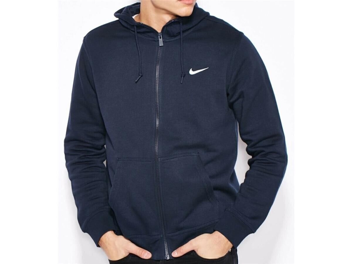 Nike Mens Fleece Hoodie Long Sleeve Swoosh Full Zip Soccer Hoody - Navy Cotton - Size Small