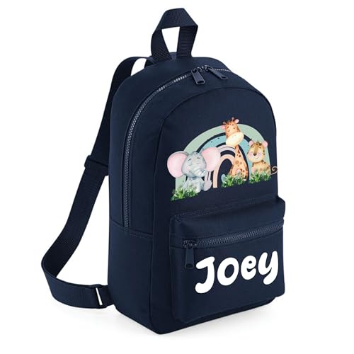 The Baby Box UK Personalised Boys Backpack Toddler Safari Dinosaur Back Pack Childrens Rucksack (Navy)