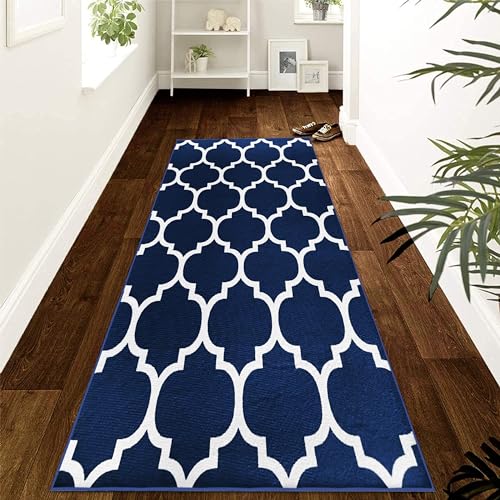 Hafaa Navy Blue Runner Rugs for Hallway Non-Slip Trellis Pattern Carpet for living room 60 x 220 cm Runner – Printed Carpets Runner for Lounge Office Bedroom (AVA NAVY)