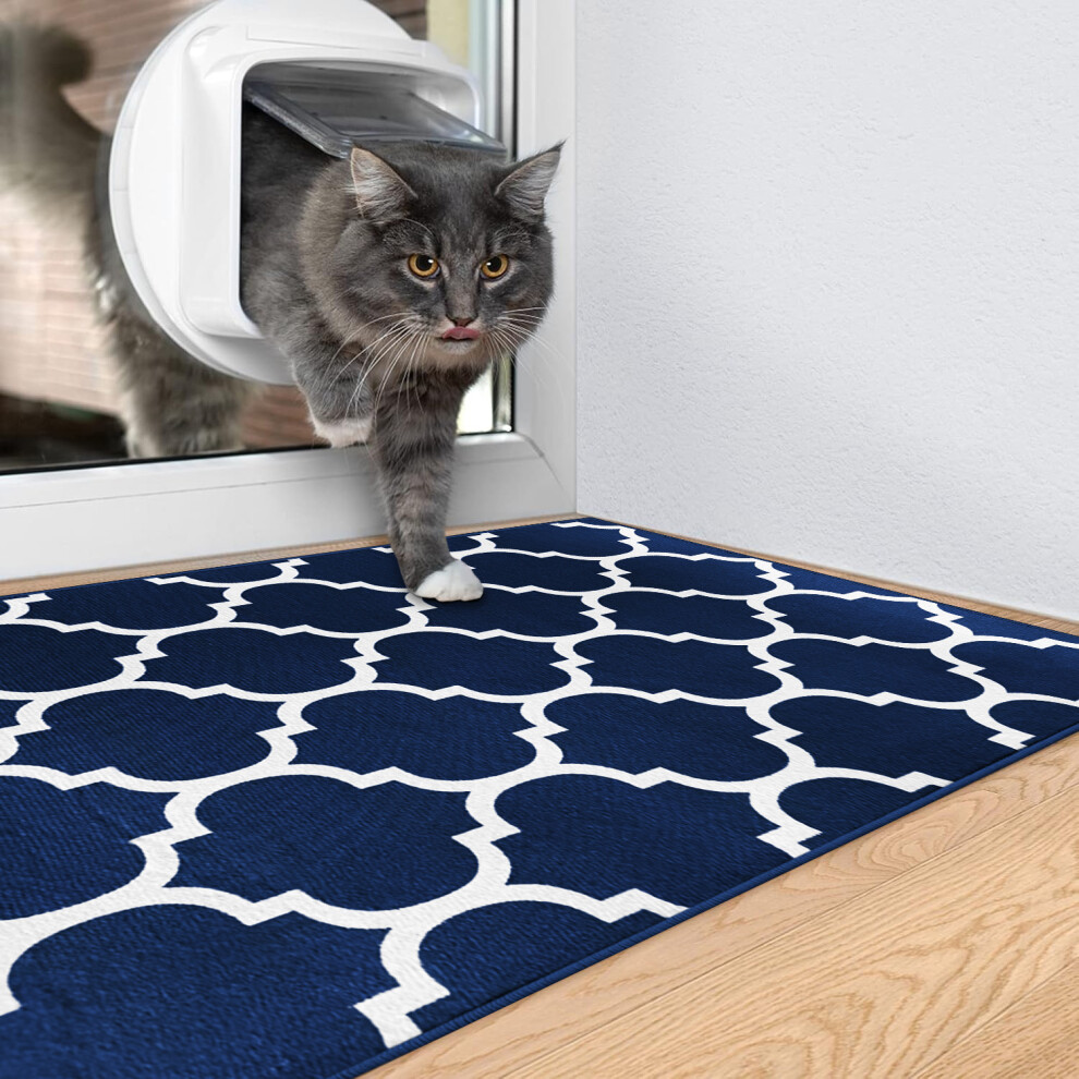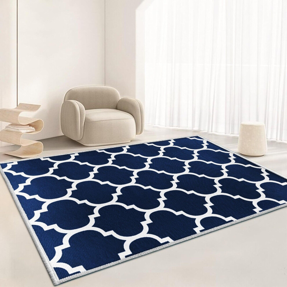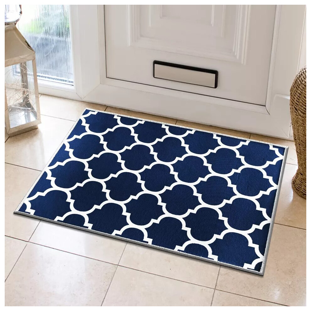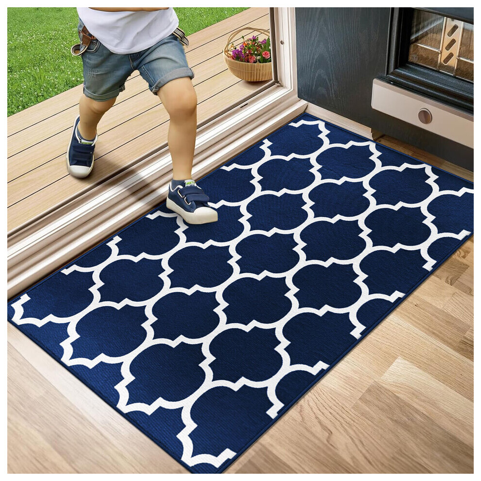 (40 x 60 cm (1 ft 3 in x 1 ft 9 in)_Small Bath Mat/Door Mat, Ava Navy) Extra Large Rugs Living Room Printed Rug Runner