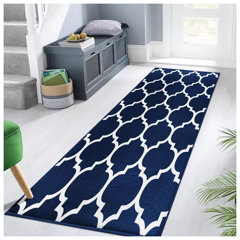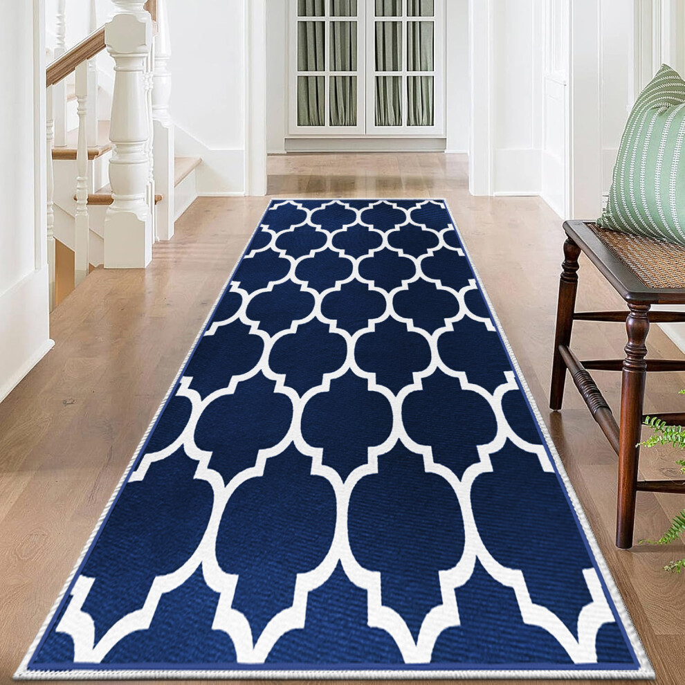 Hafaa Navy Blue Runner Rugs for Hallway Non-Slip Trellis Pattern Carpet for living room 60 x 220 cm – Printed Carpets Runner for Lounge Office Bedroom (AVA NAVY)