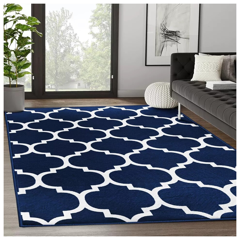 (120 x 170 cm (4 ft. x 5 ft. 6 in), Ava Navy) Extra Large Rugs Non Slip Area Rug Modern Luxury Living Room Bedroom Carpets