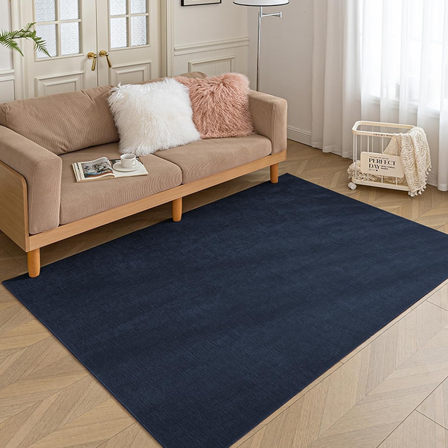 Washable Rugs for Bedroom-80x120cm, Navy Low Pile Rugs Living Room, Non Slip Ki