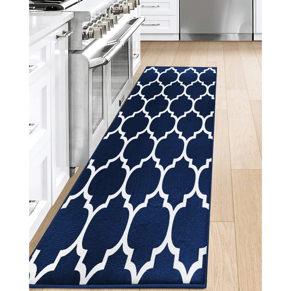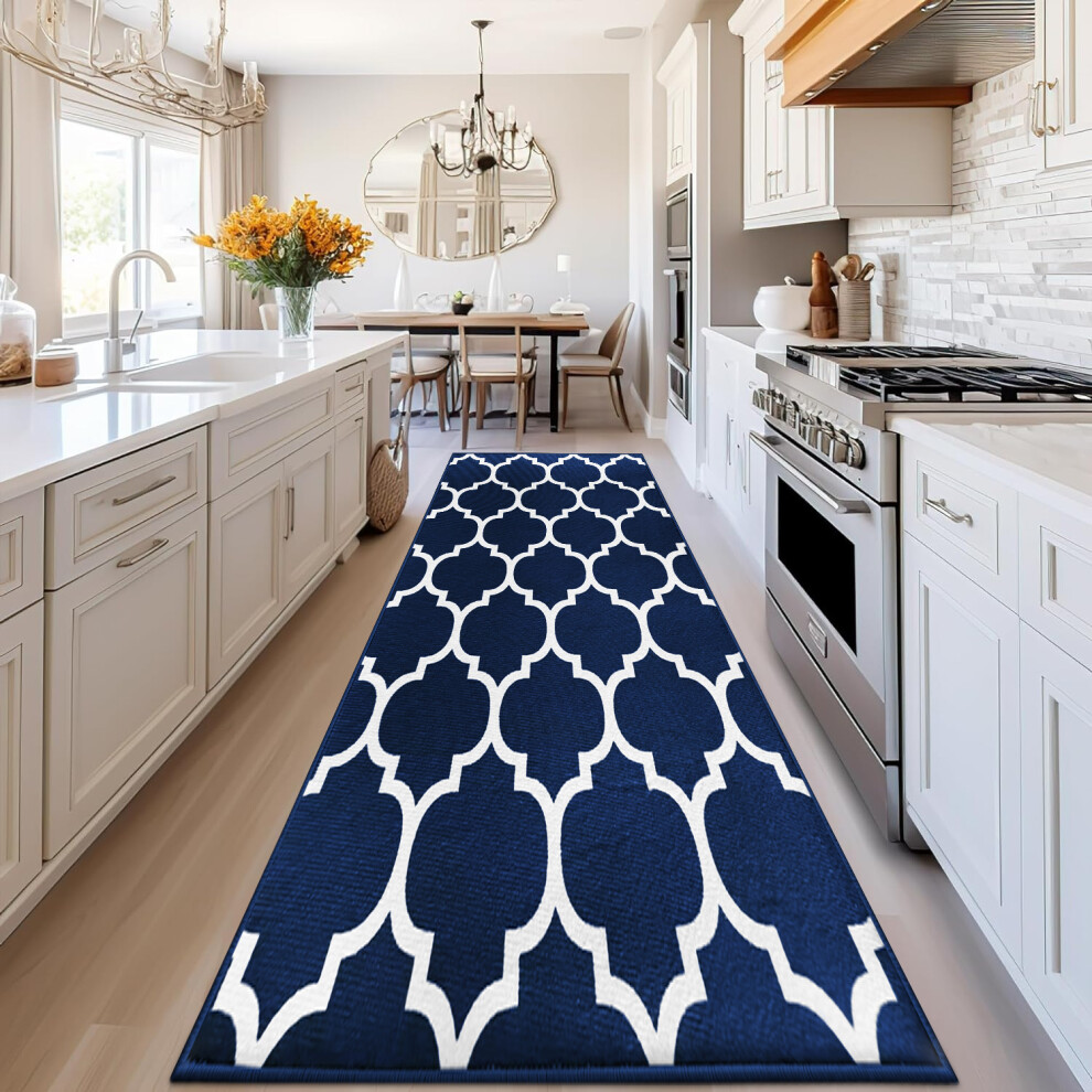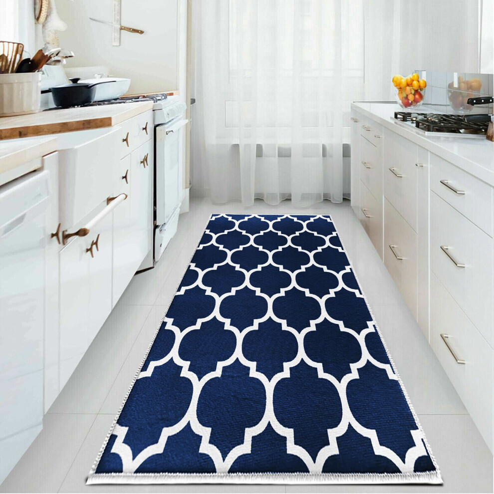 1pc soft moroccan Kitchen rugs Navy Mediterranean Carpet runner rugs for kitchen laundry hallway Dirt resistant Boho Durable Washable Non slip Soft En