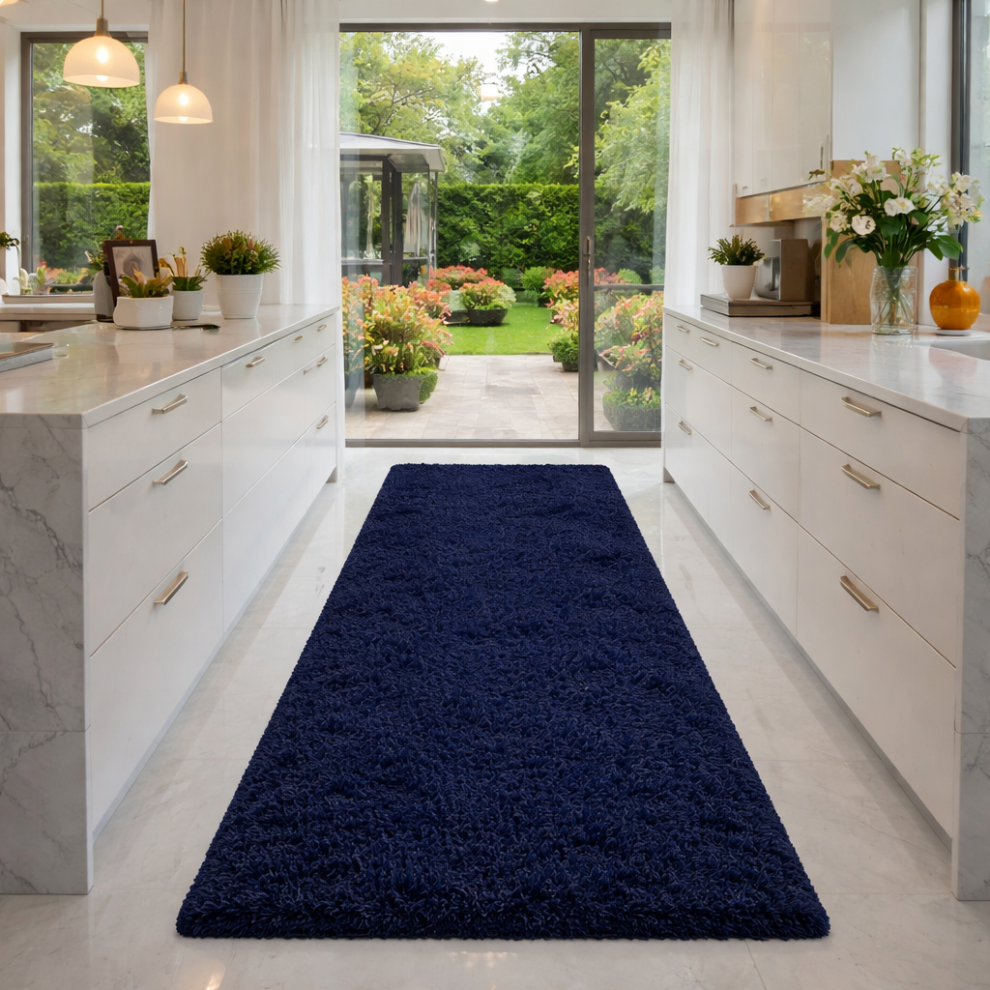 (60cm x 220cm (2ft x 7ft 3")- Runner Rug) Navy Blue Shaggy Rugs Living Room Bedroom Runner Mats