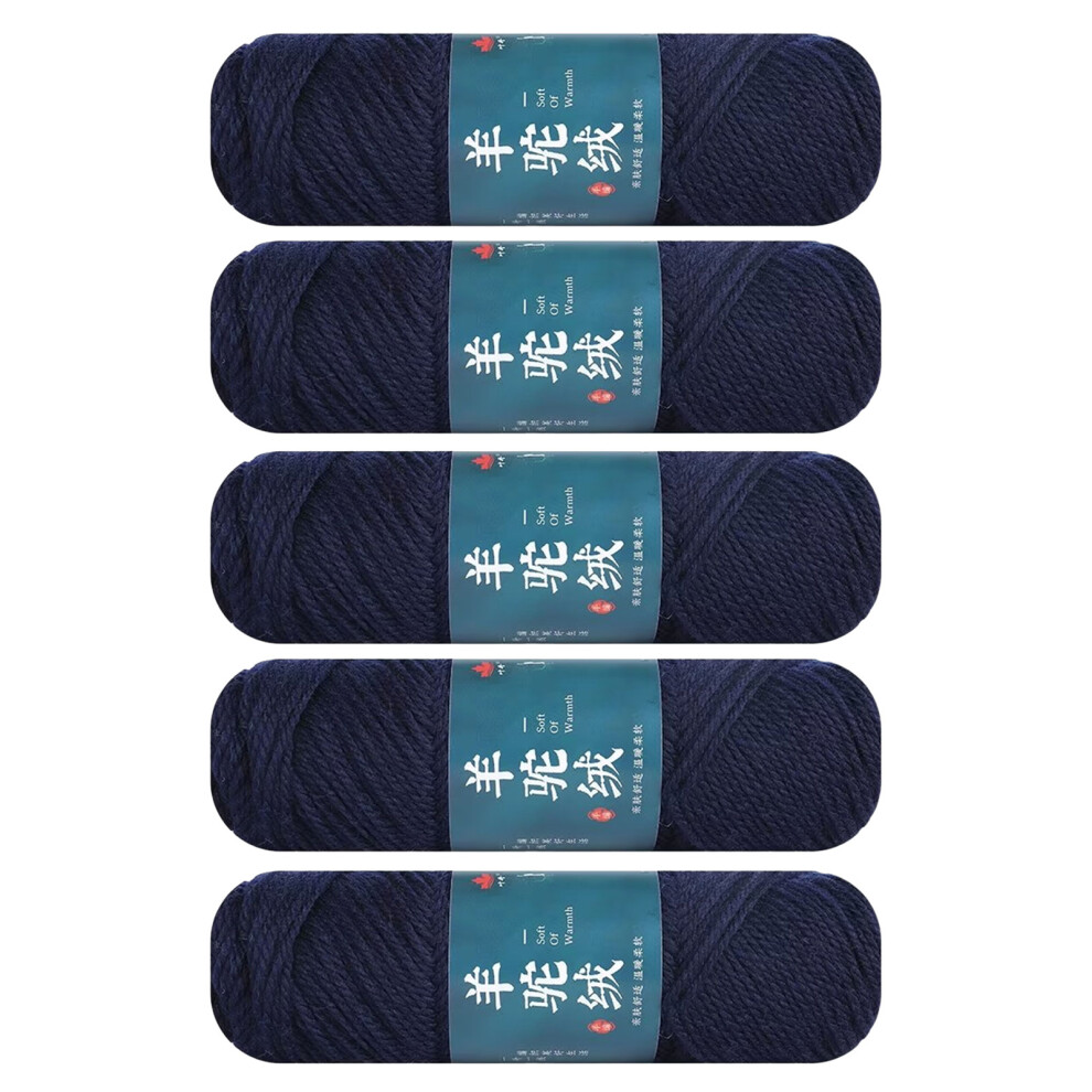 5Pcs Soft Wool Yarn For Beginner Crocheting Rugs-Navy Blue