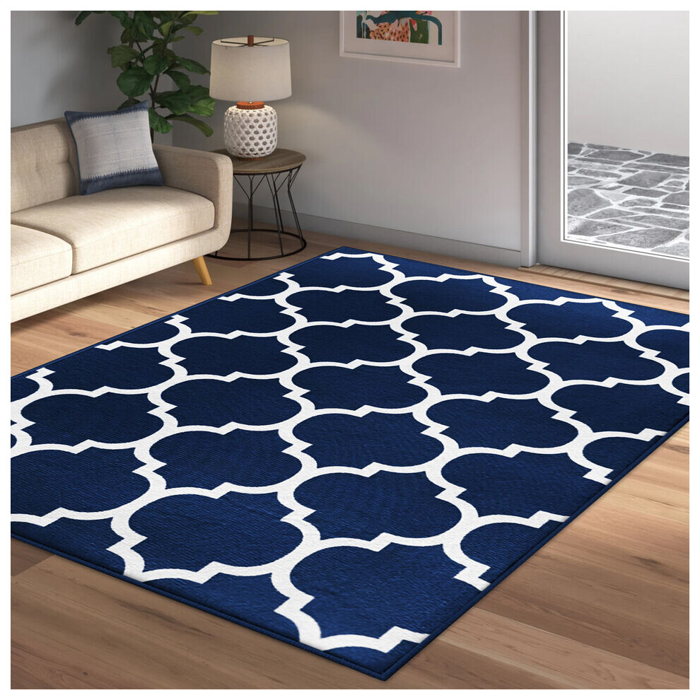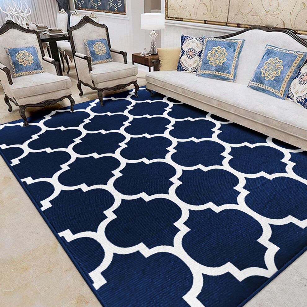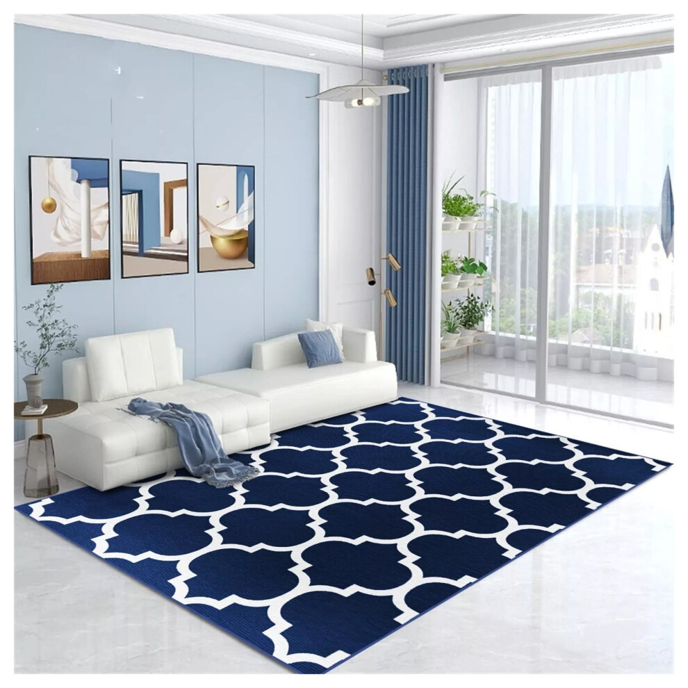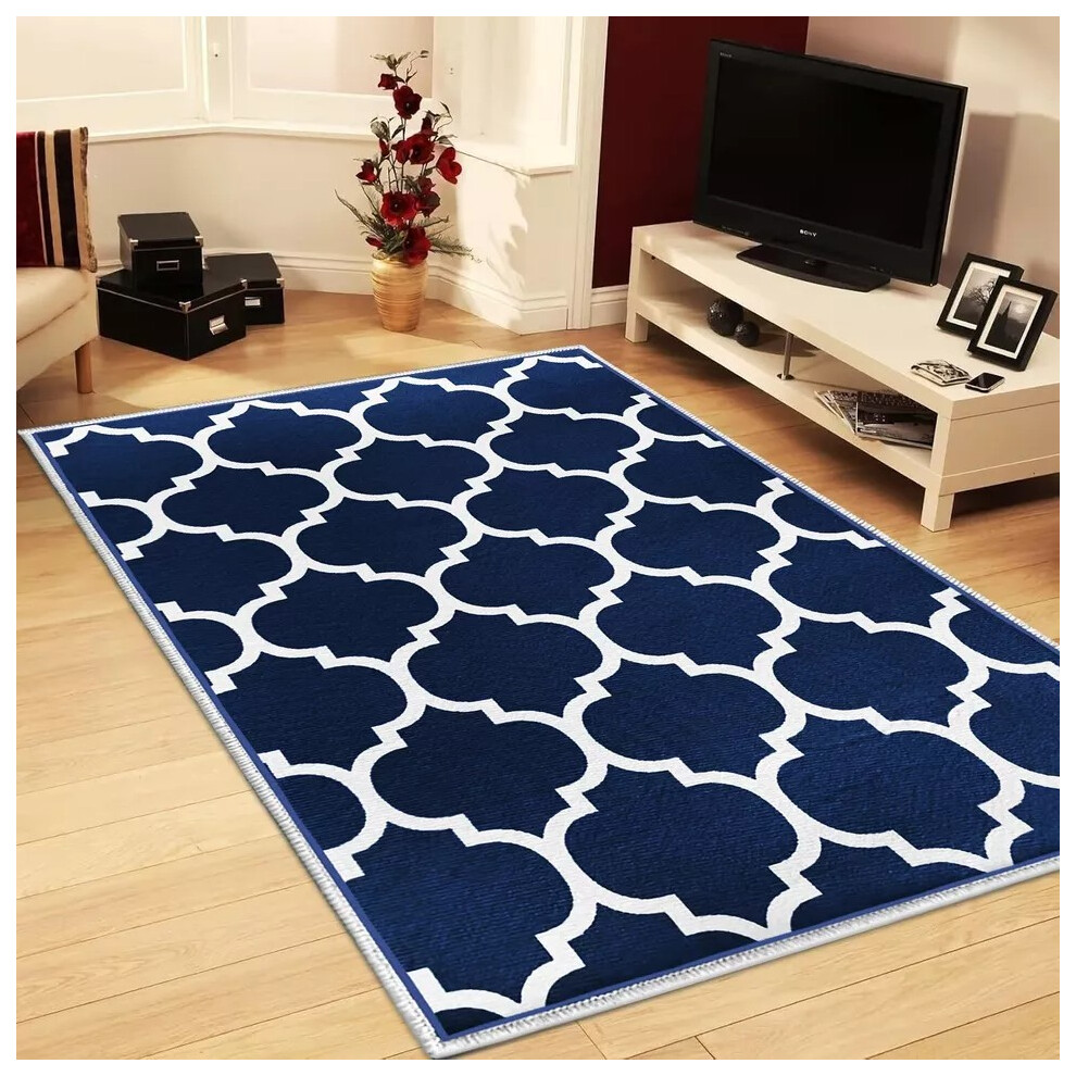 (160 x 230 cm (5 ft 2 in x 7 ft 5 in)_Large Rugs For Living Room Bedroom Area, Ava Navy) Extra Large Rugs Living Room Printed Rug Runner
