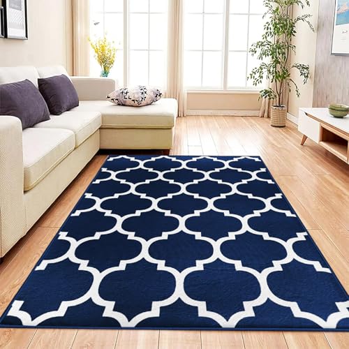 MOONLIGHT20015 Rugs Living Room 120 x 170 cm - Trellis Style Navy Blue Area Rugs for Bedroom Dining Room – Non Slip Large Bedside Rug Printed Carpet for Lounge, Ava Navy
