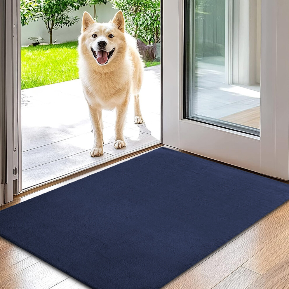 (60x110 cm (2ft x 3ft 7")_Bath Door Floor Mat , Fluffy Blue Navy) Faux Fur Rugs Living Room Non Slip Area Rug Carpet