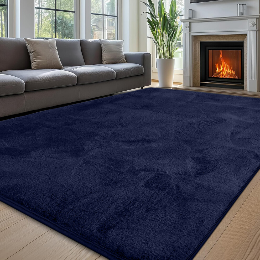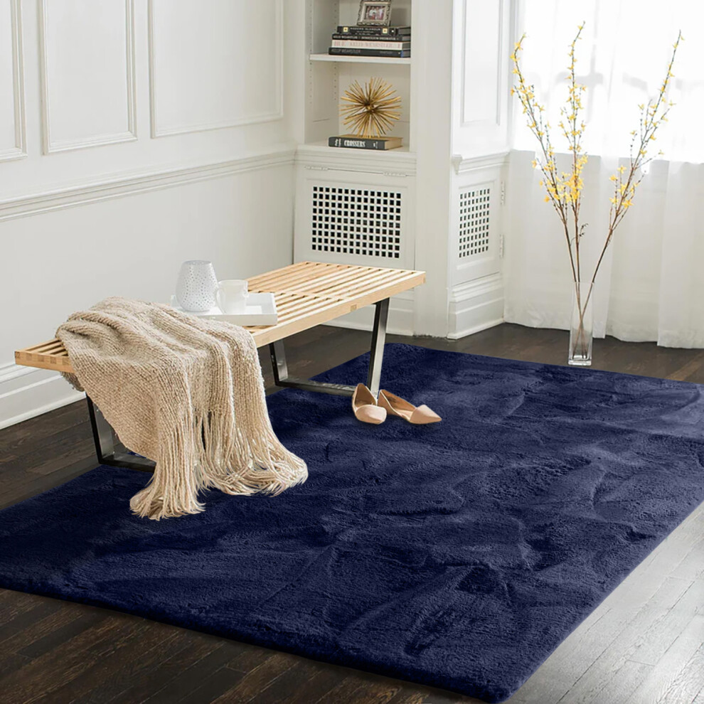 (160x230 cm (5ft 3" x 7ft 6")_Large Rugs For Bedroom Living Room, Fluffy Blue Navy) Faux Fur Rugs Living Room Non Slip Area Rug Carpet