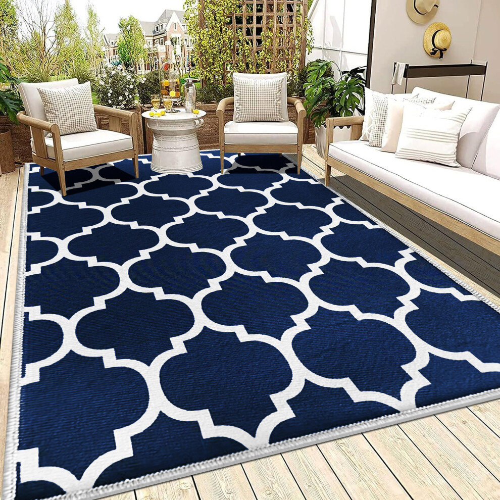 (120 x 170 cm (4 ft x 4 ft 9 in)_Small Area Rug, Ava Navy) Extra Large Rugs Living Room Printed Rug Runner