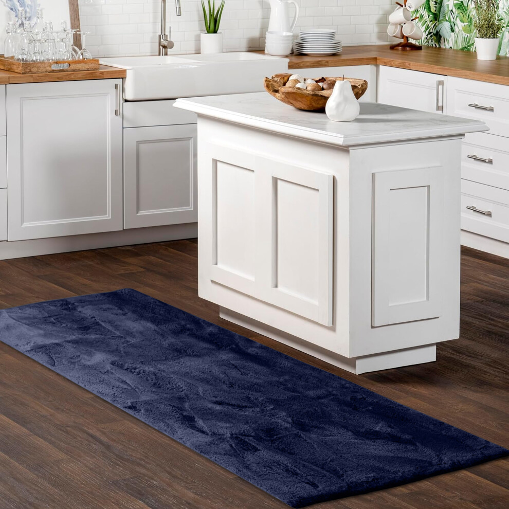 (80x150 cm (2ft 8" x 5ft)_Large Floor Mat Runner Rug, Fluffy Blue Navy) Faux Fur Rugs Living Room Non Slip Area Rug Carpet