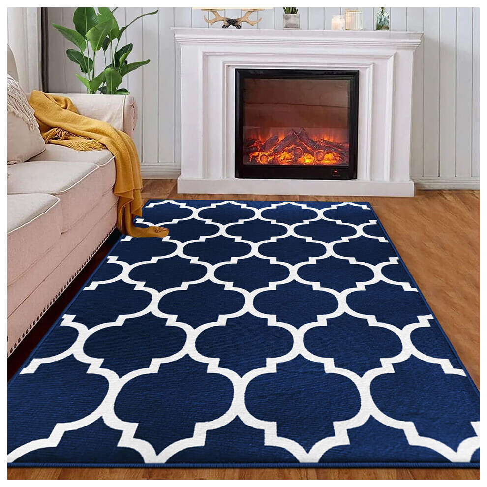 (120 x 170 cm (4ft x 5ft 5")- Small Printed Area Rug/Carpet, AVA NAVY) Large Area Rugs For Living Room Geometric Printed Rug Anti Slip Floor Carpet