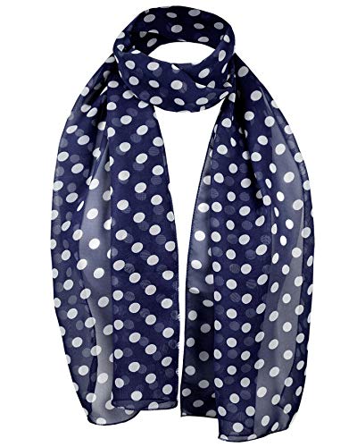 TRIXES Ladies Polka Dot Navy Blue Scarf - 1950's Retro Fashion Accessory - Lightweight Neck Head Wrap