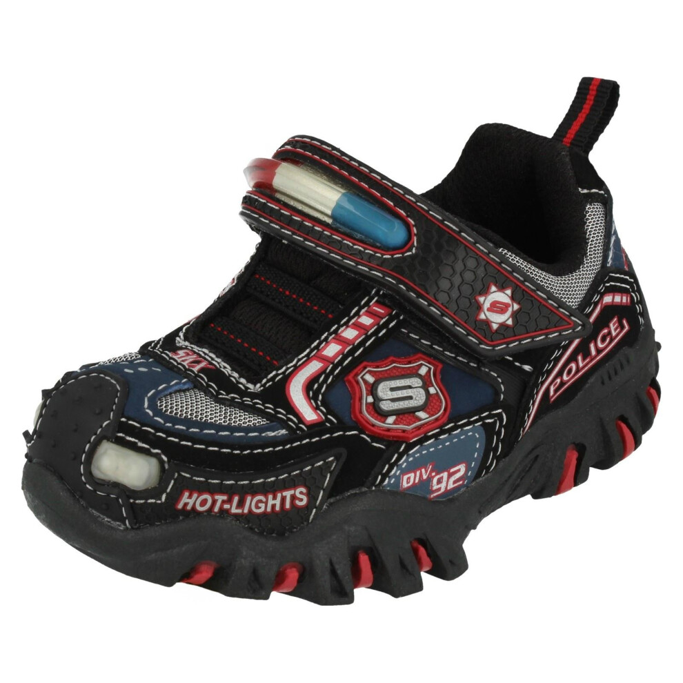 (UK 4 Infant, Black/Red/Navy (Black)) Boys Skechers Hot Lights Trainers Police
