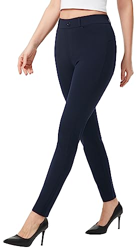 AFITNE Work Trousers for Women UK 28'' - High Waist Ladies Stretchy Casual Business Smart Tailored Trousers Womens Office Suit Pants with Pockets Navy Blue M