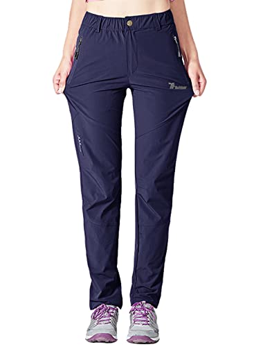 donhobo Lightweight Walking Trousers Womens Quick Dry Outdoor Hiking Pants with Zip Pockets Water-Resistant Ladies UPF 50+ Casual Trouser for Work Golf Gym(Navy L)