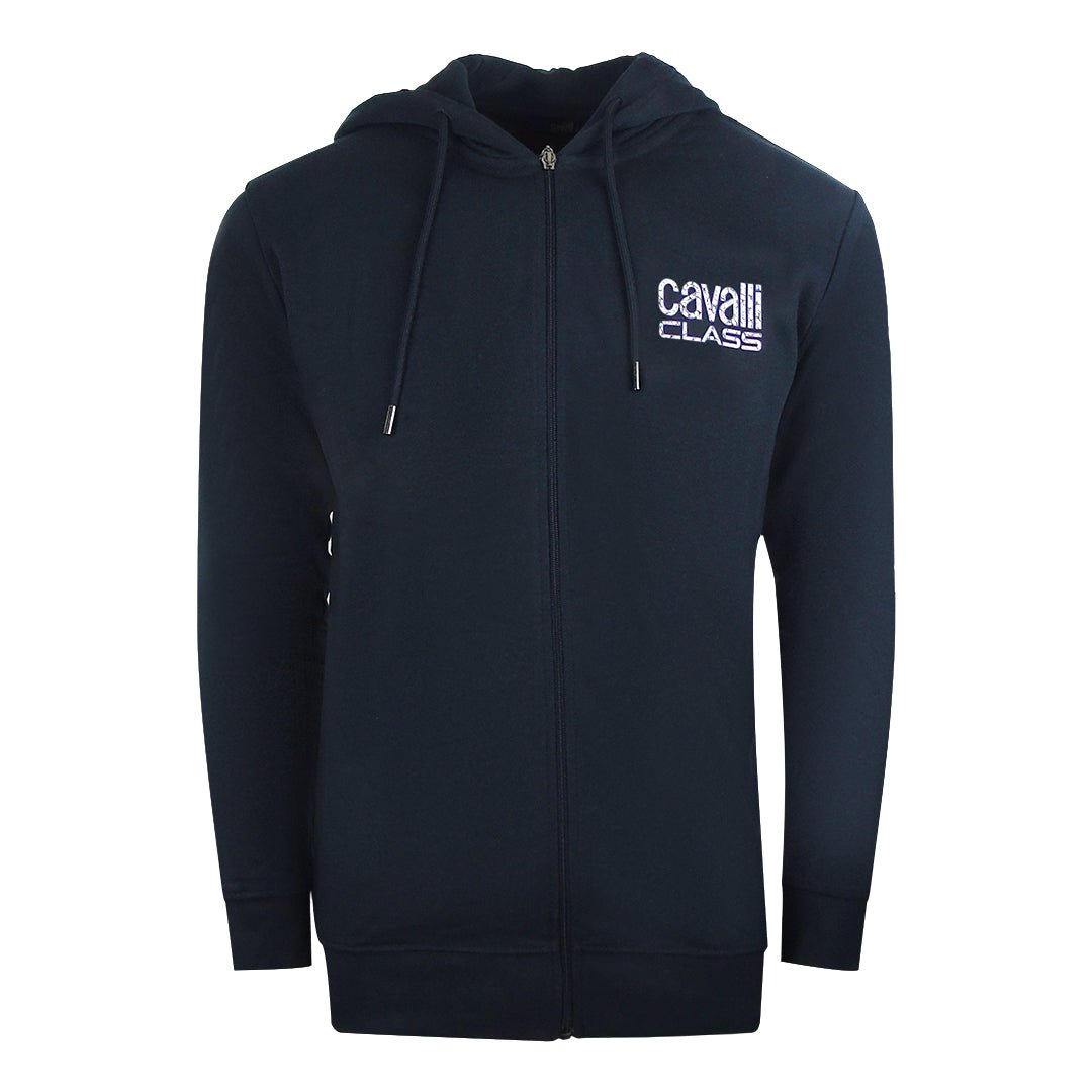 Cavalli Class Mens Reverse Logo Navy Blue Zip-Up Hoodie Cotton - Size Large