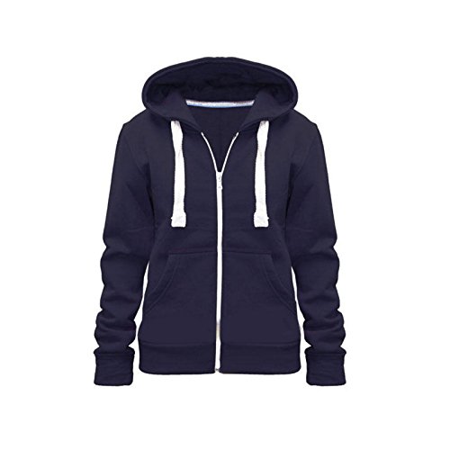Parsa Fashions Ladies Plain Zip Up Hoodie Womens Fleece Hooded Top Long Sleeves Front Pockets Soft Stretchable Comfortable (Navy/L UK-12)