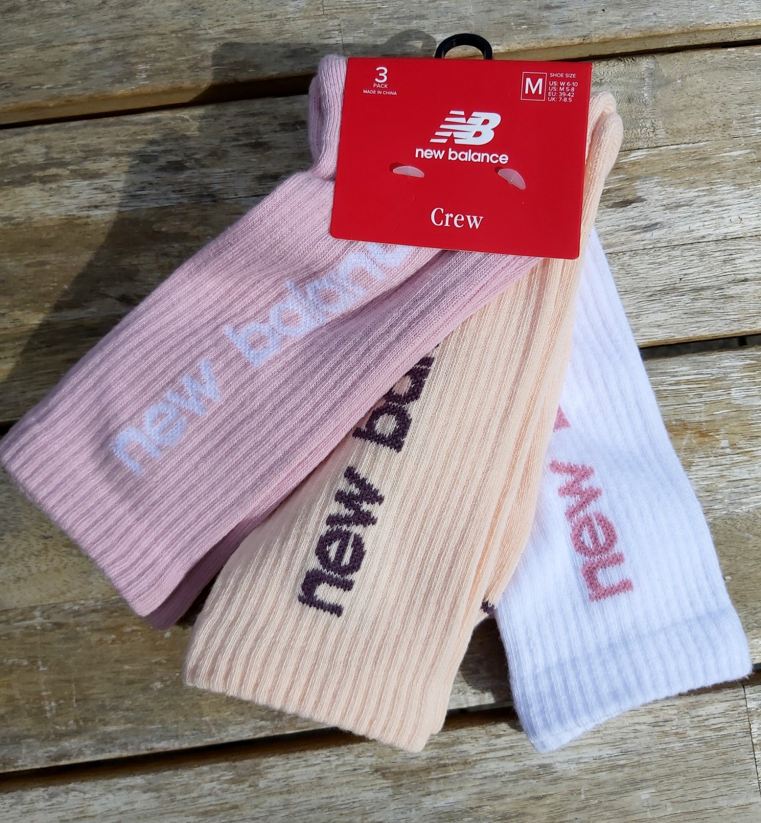 3 PAIRS : 7-8.5 , 39-42 NEW BALANCE Pink Apricot White CREW Trainer SOCKS NB6