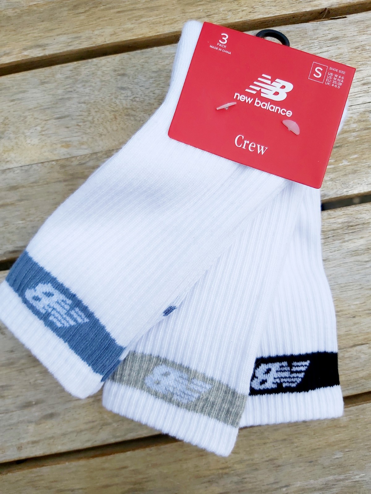 3 Pairs : S 4-6.5 35-38 NEW BALANCE White Logo CREW Cushioned Trainer SOCKS NB7