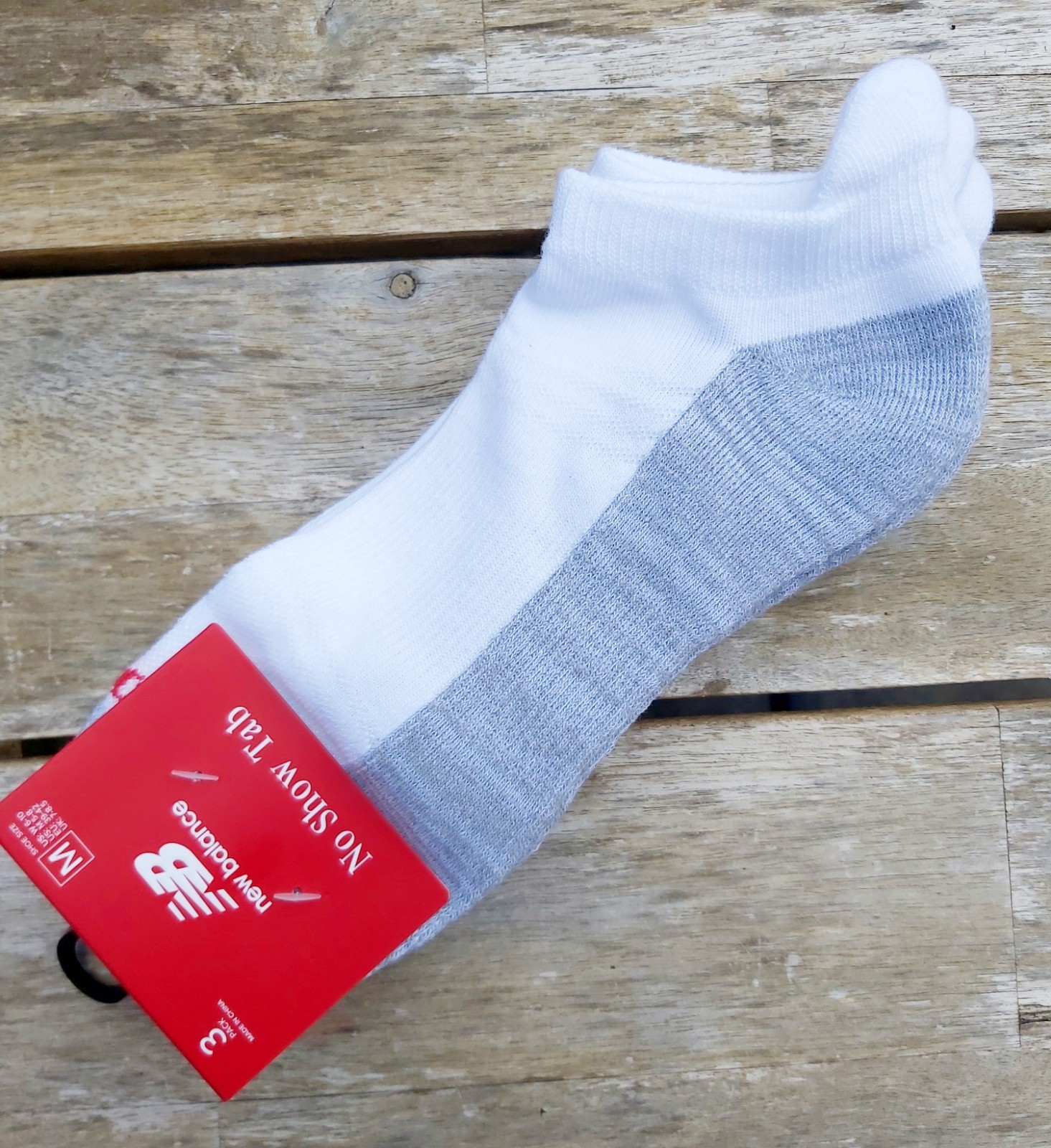 7-8.5 39-42 NEW BALANCE White Grey Black CUSHIONED NO SHOW TAB Trainer SOCKS NB3