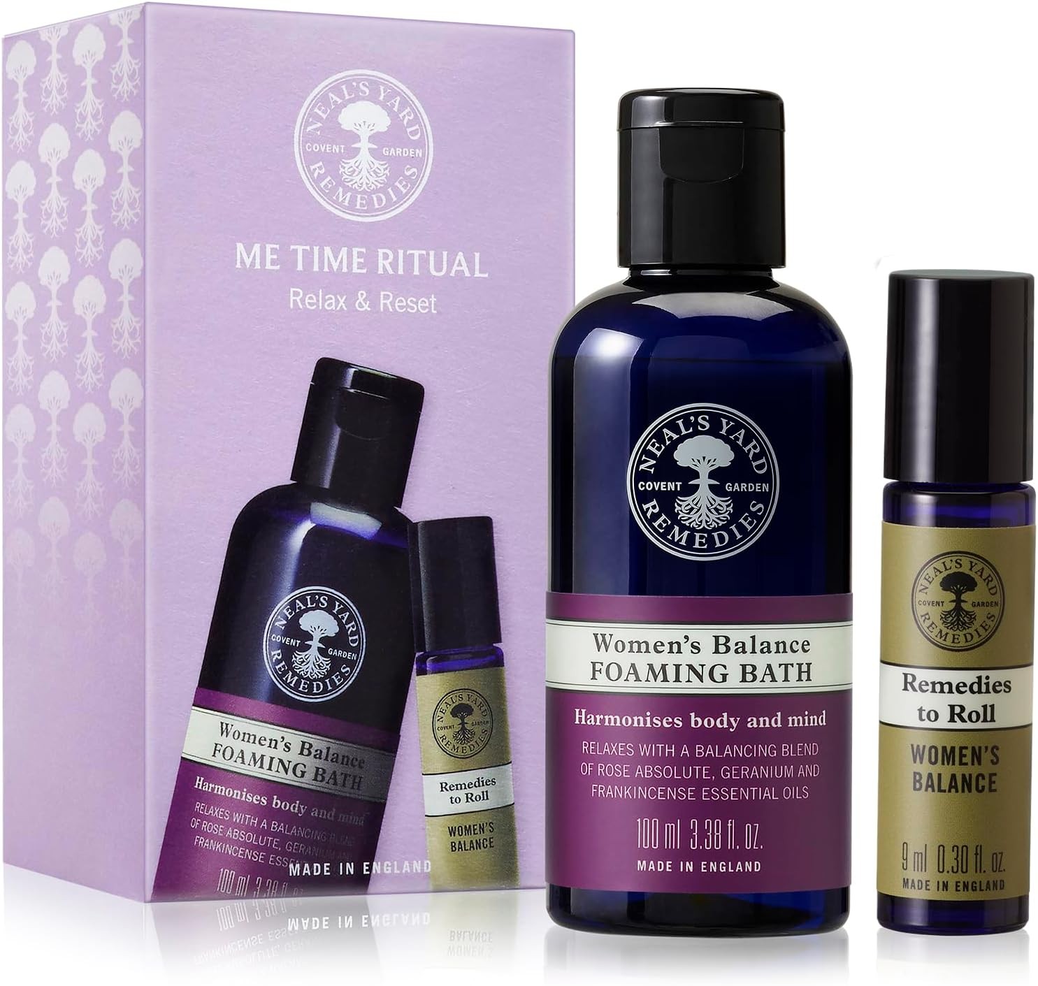 Neal's Yard Remedies Me Time Ritual Gift Set, Foaming Bath Wash & Remedies To Roll Women's Balance Oil, Vegan & Cruelty-Free, Set of 2