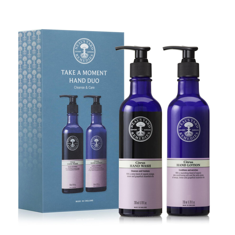 Neal's Yard Remedies Take A Moment Citrus Gift Set, Hand Wash & Hand Lotion With Essential Oils, Vegan & Cruelty-Free, Set of 2