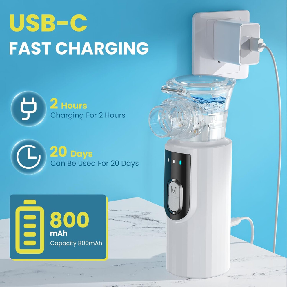 Nebuliser Machine for Kids Adults, USB-C Rechargeable, Portable & Silent Design, Easy to Use & Clean, Handheld Nebulizer for Home and Travel