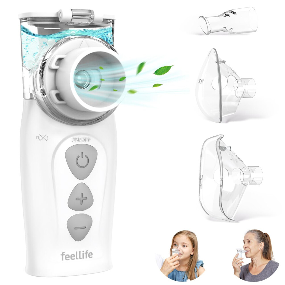 FEELLIFE Nebuliser Machine for Adults, Type-C Rechargeable Portable Nebuliser for Adults & Kids, Silent Portable Handheld Inhaler with 2 Masks, Mouthp