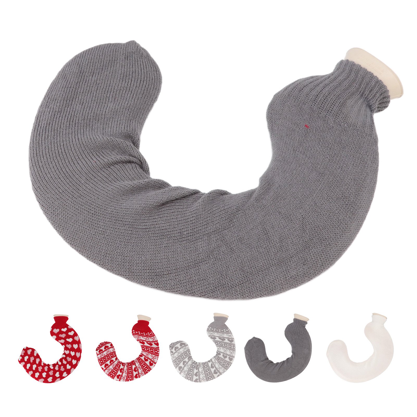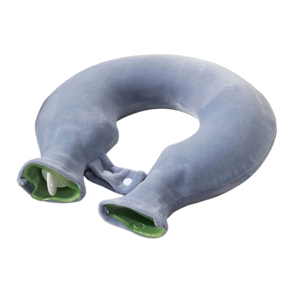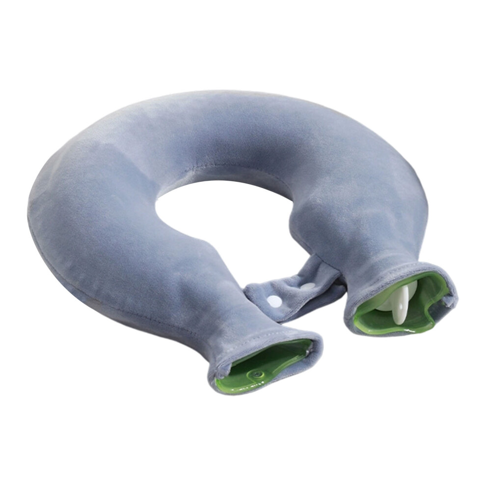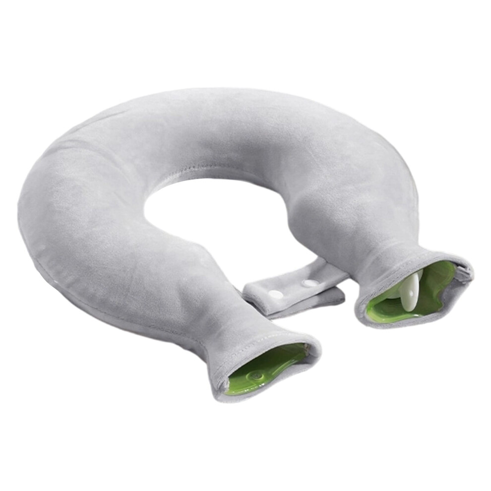 U Shaped Hot Water Bag Soft 1L Water Injection Neck Shoulder Hot Water Bottle with Soft Cover for Travel Grey Pure Color