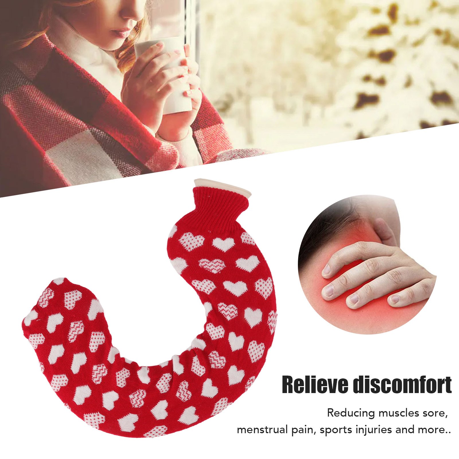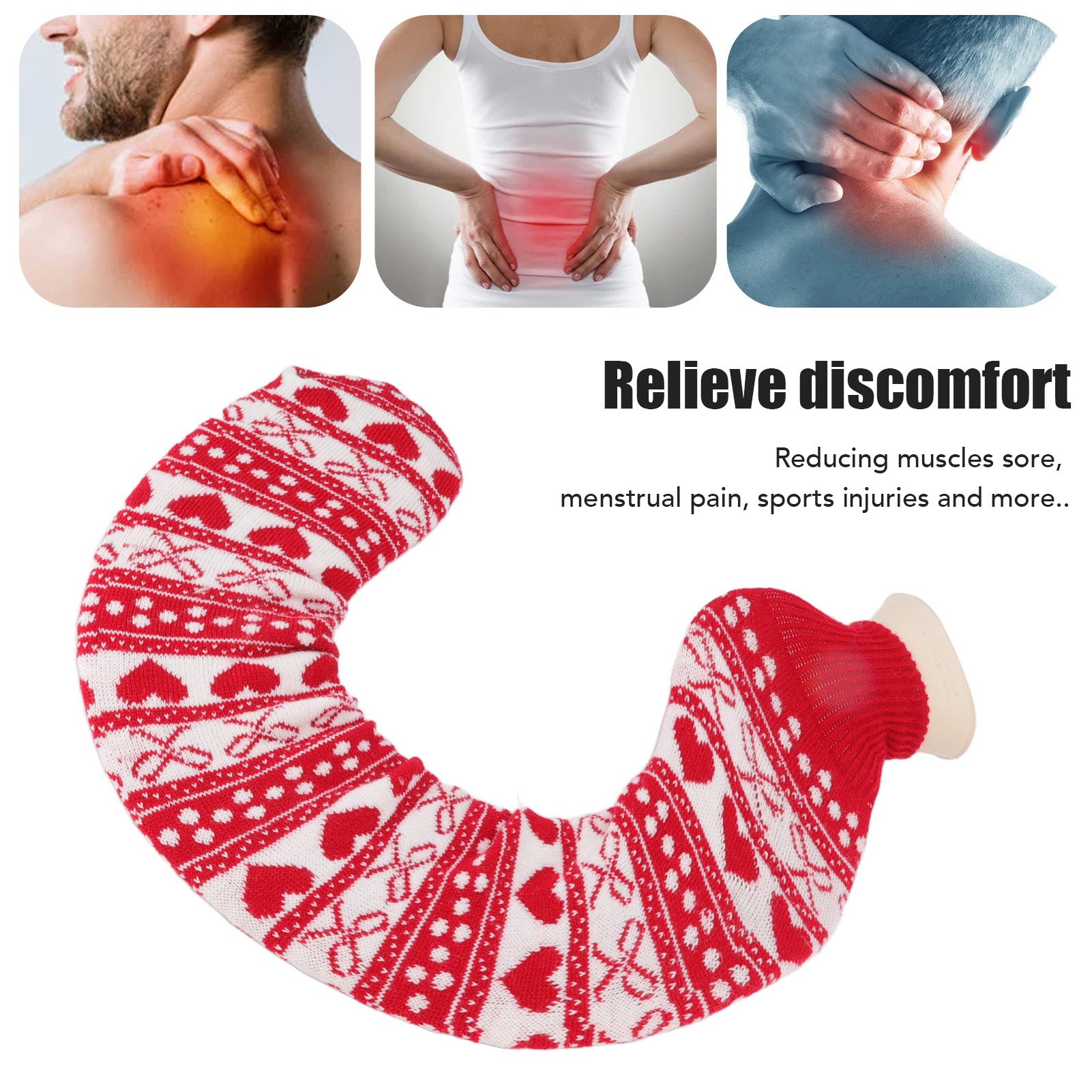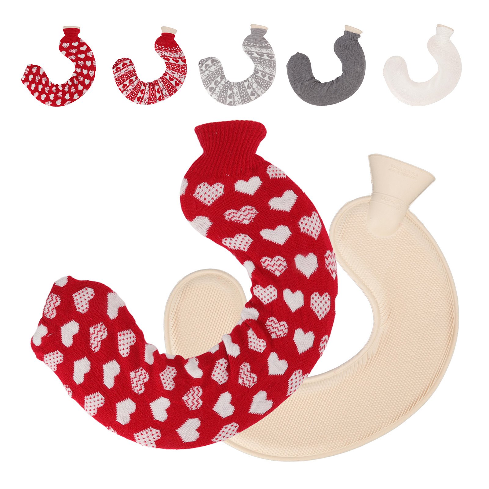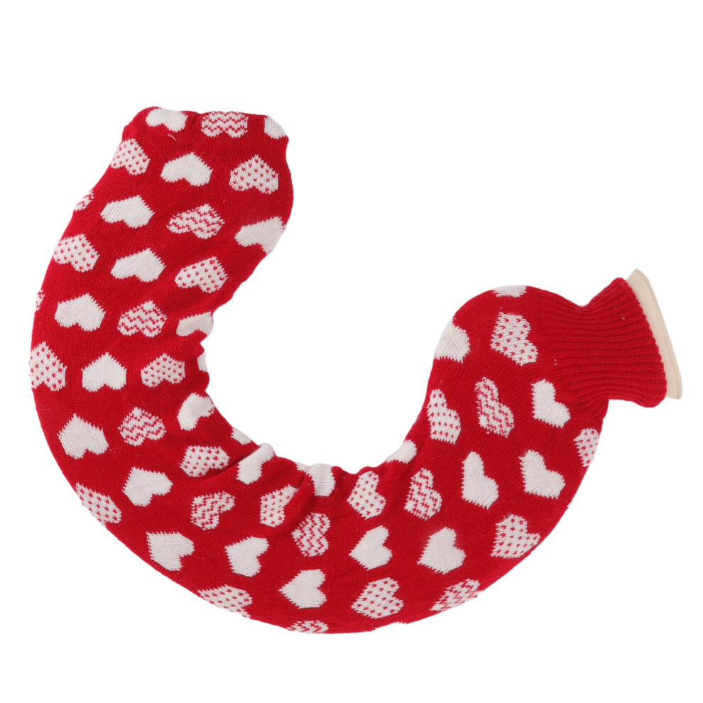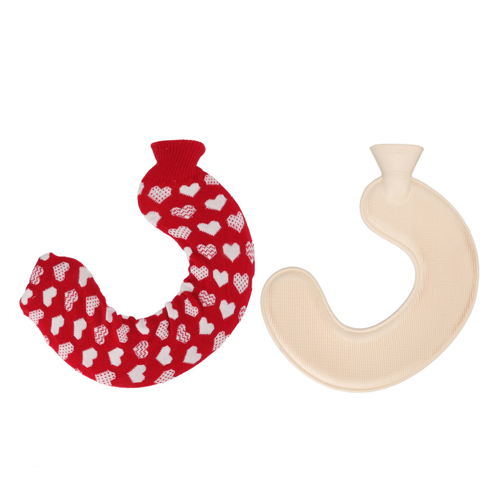 U Shaped Hot Water Bag Soft 1L Water Injection Neck Shoulder Hot Water Bottle with Soft Cover for Travel Red Background White Heart