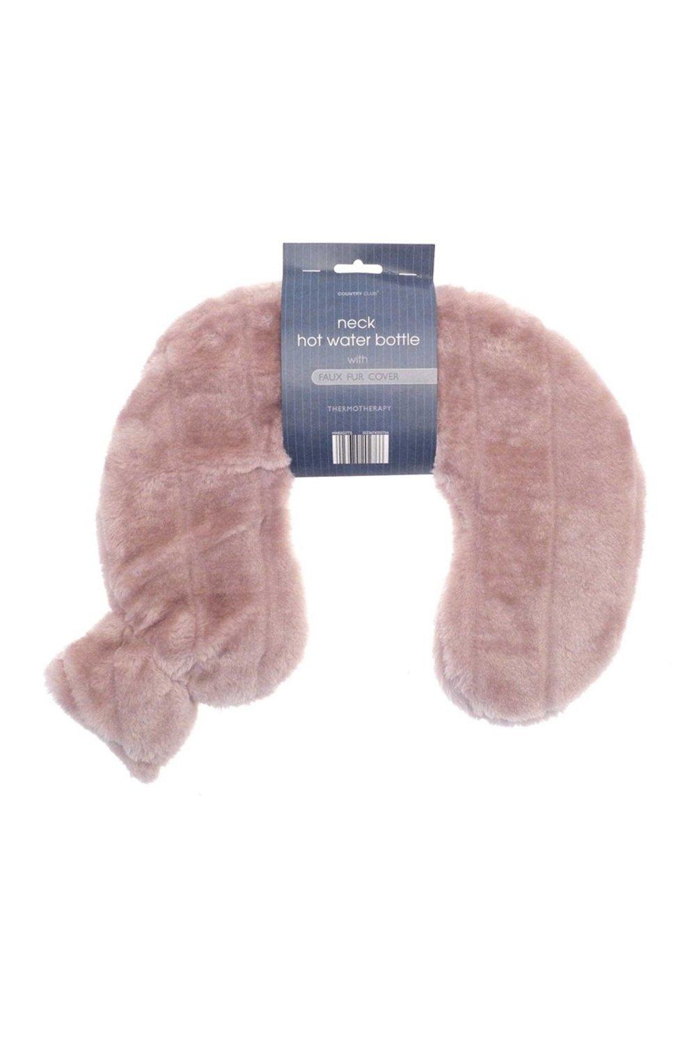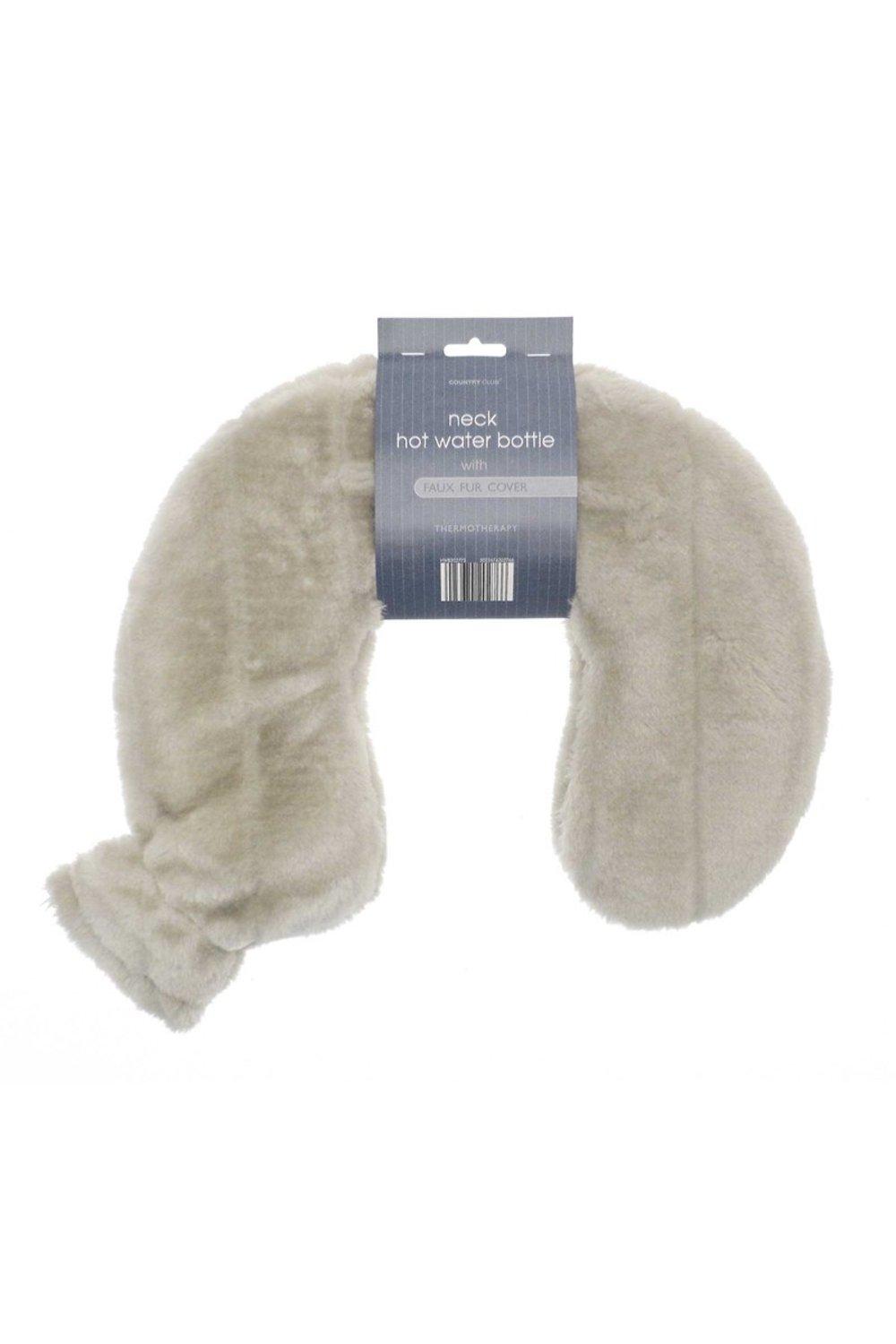 Neck Hot Water Bottle Grey Faux Fur Soft Plush Shoulder Heat Relief Comfort