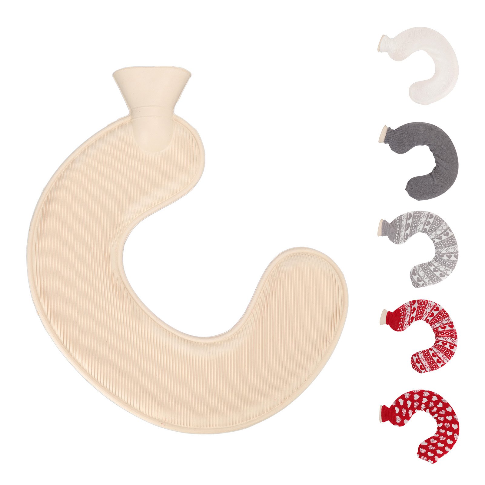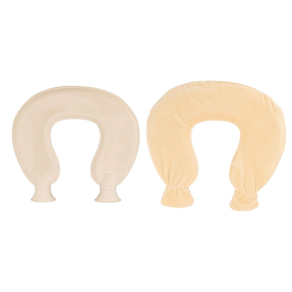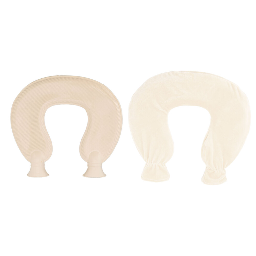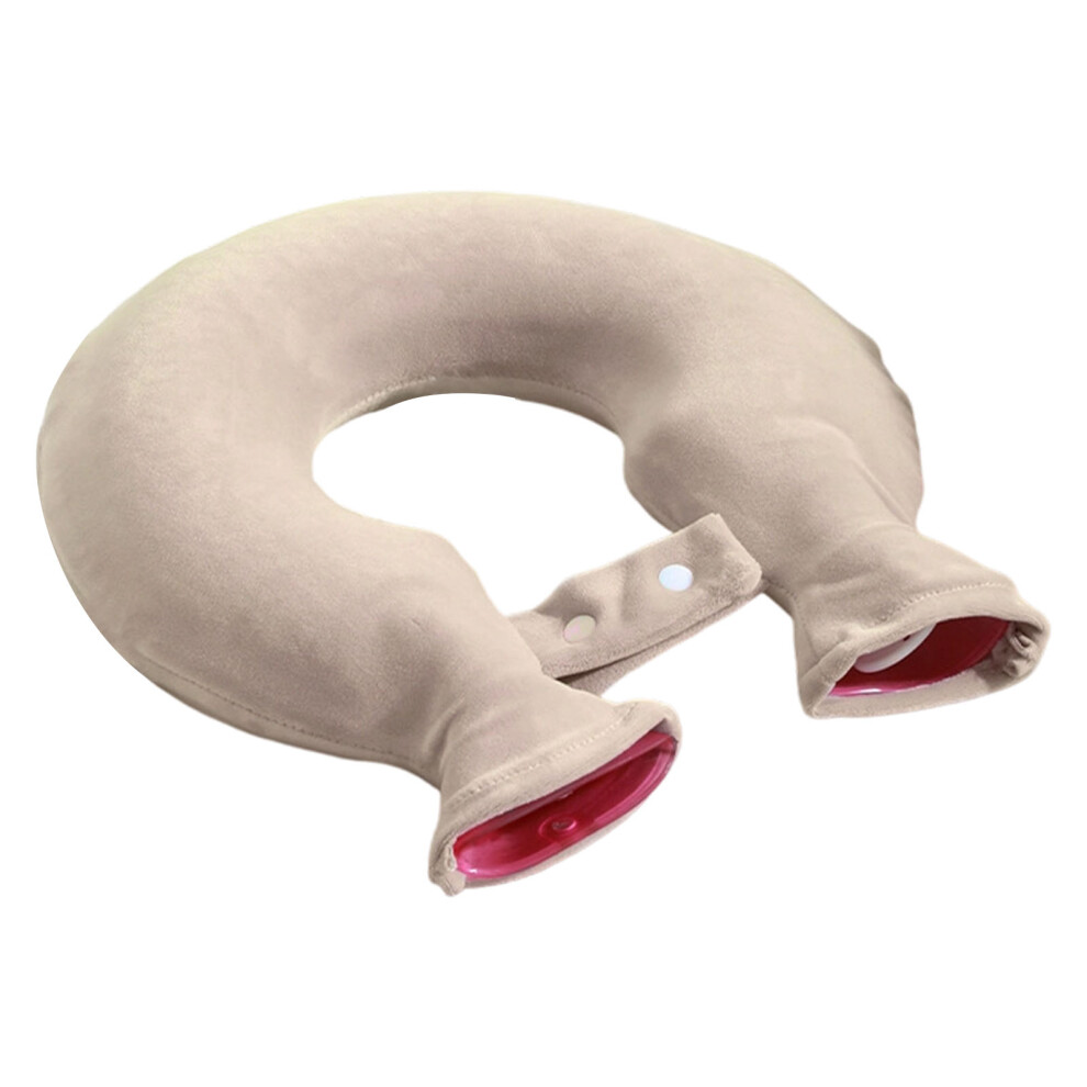 U Shaped Hot Water Bag Soft 1L Water Injection Neck Shoulder Hot Water Bottle with Soft Cover for Travel Beige Pure Color