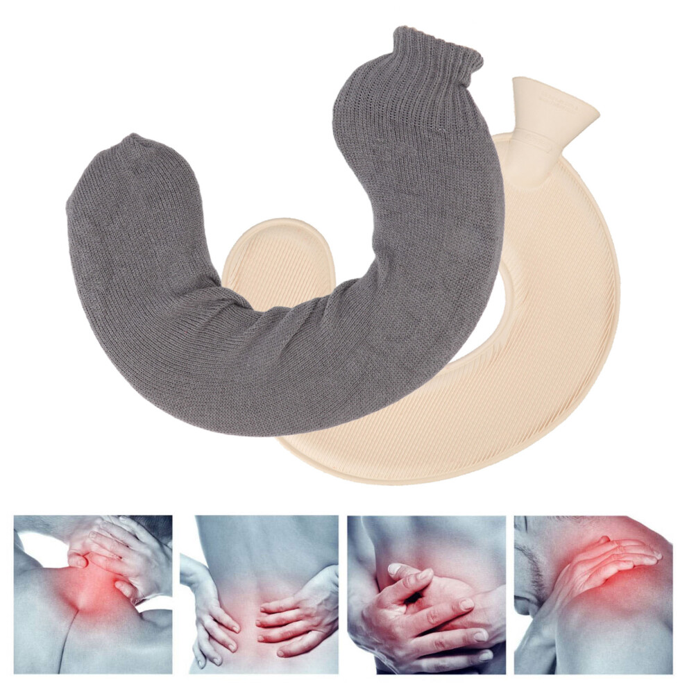 U-Shaped Neck & Shoulder Hot Water Bottle With Soft Cover, Leak-Resistant Rubber Bag For Comforting Heat For Daily Use(Gray)