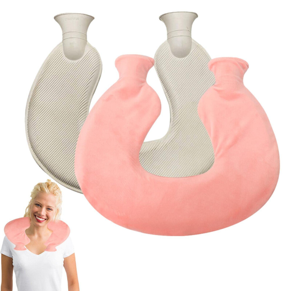 U-Shaped Neck & Shoulder Hot Water Bottle With Soft Cover, Leak-Resistant Rubber Bag For Comforting Heat For Daily Use(Pink)
